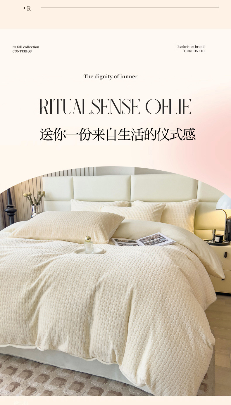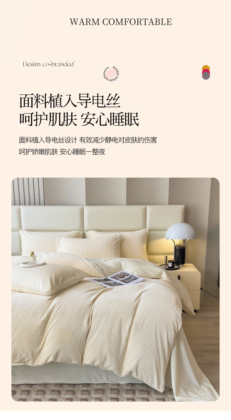 商品名称:印季 2024新款立体剪花牛奶绒保暖四件套-十字结 奶白