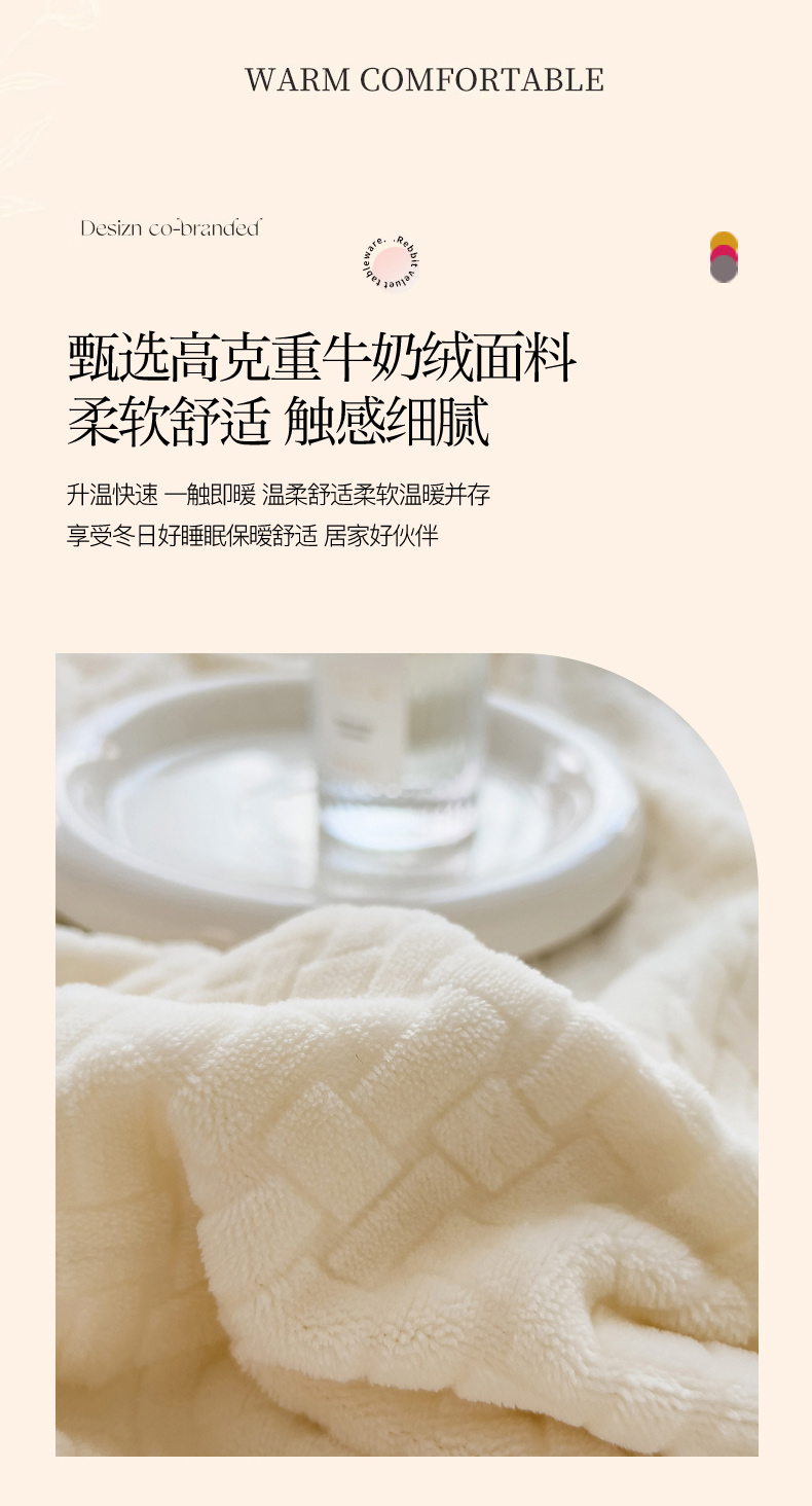 印季 2024新款立体剪花牛奶绒保暖四件套-十字结 奶白