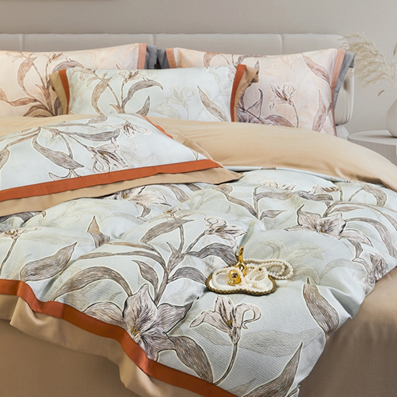 (总)榻尚家居 2025新款天丝床盖夏被夏凉被空调被四件套-佩利兹,佩利兹床盖夏被四件套-粉色,佩利兹床盖夏被四件套-香槟