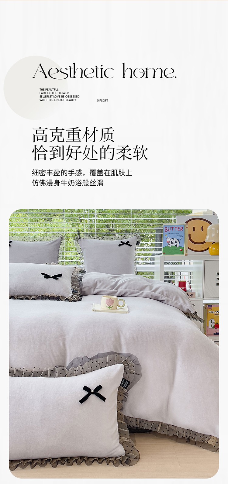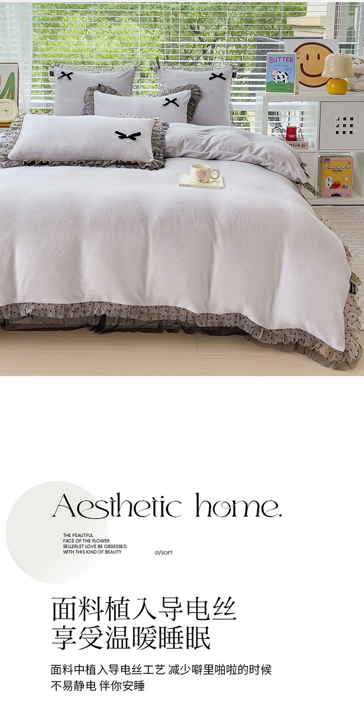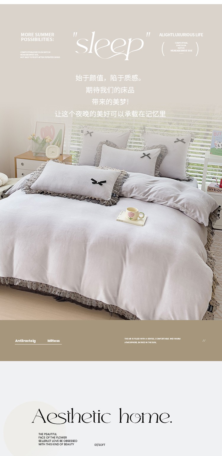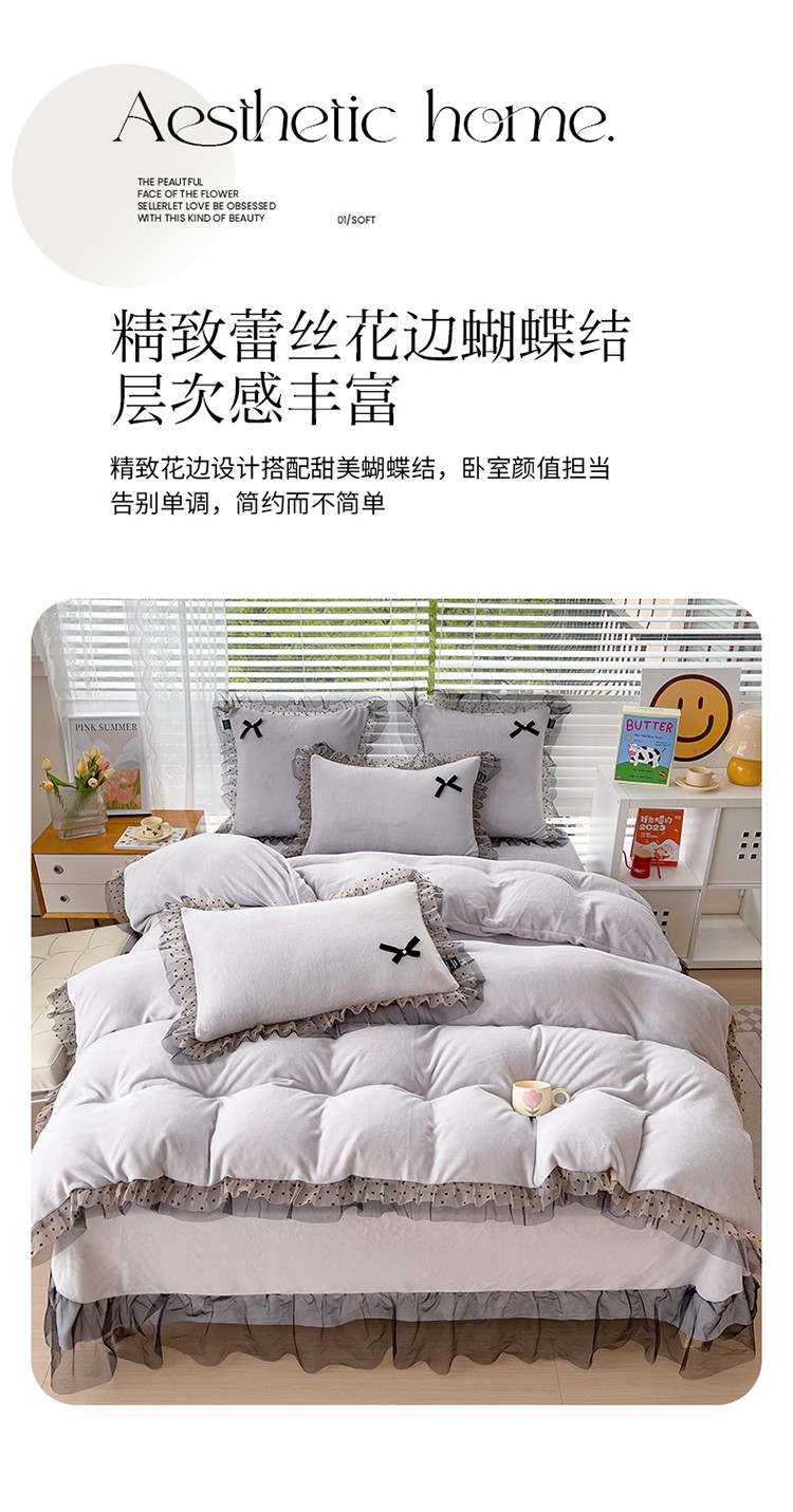 (总)2025新款牛奶绒拼纱四件套-洛可可,白色,粉紫,蓝色,浅灰色,水绿