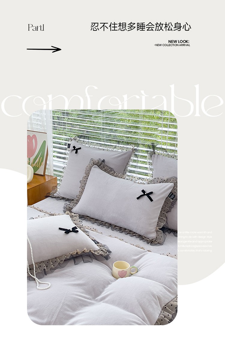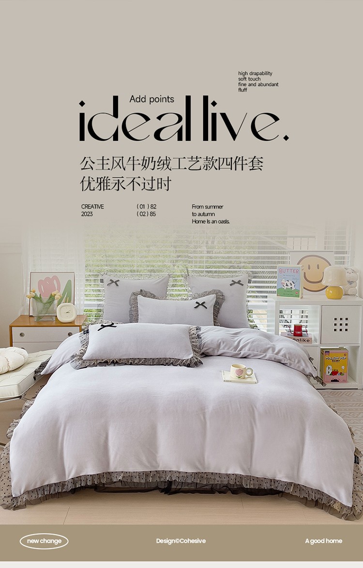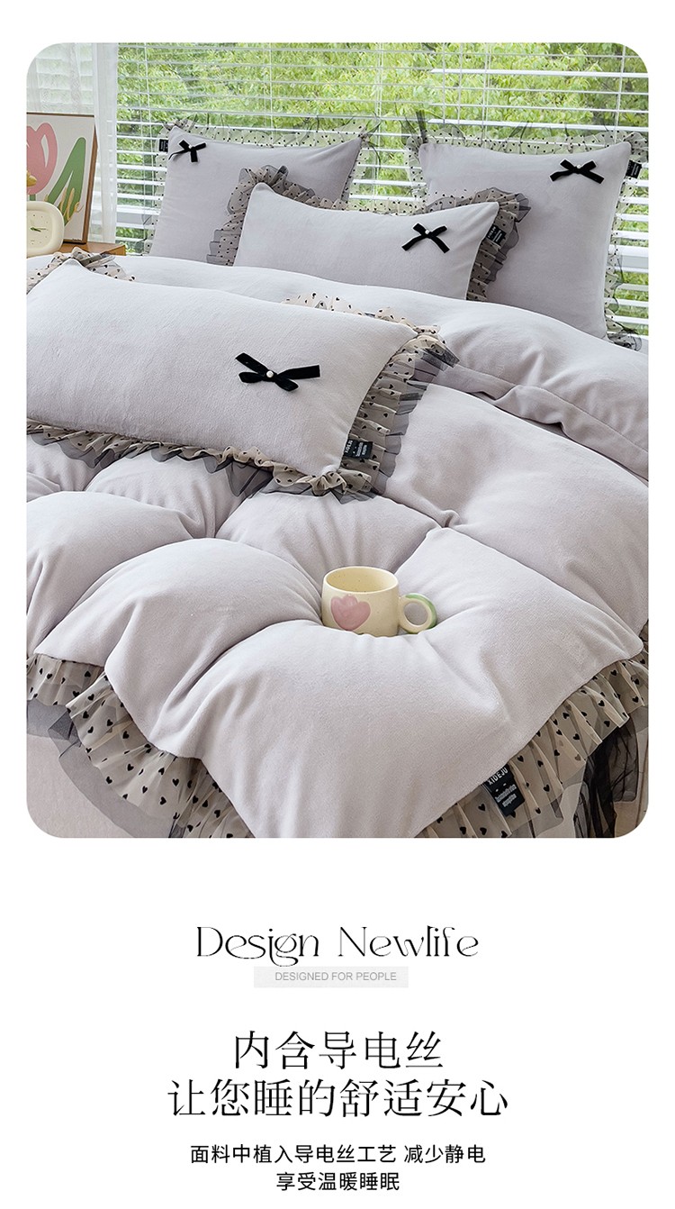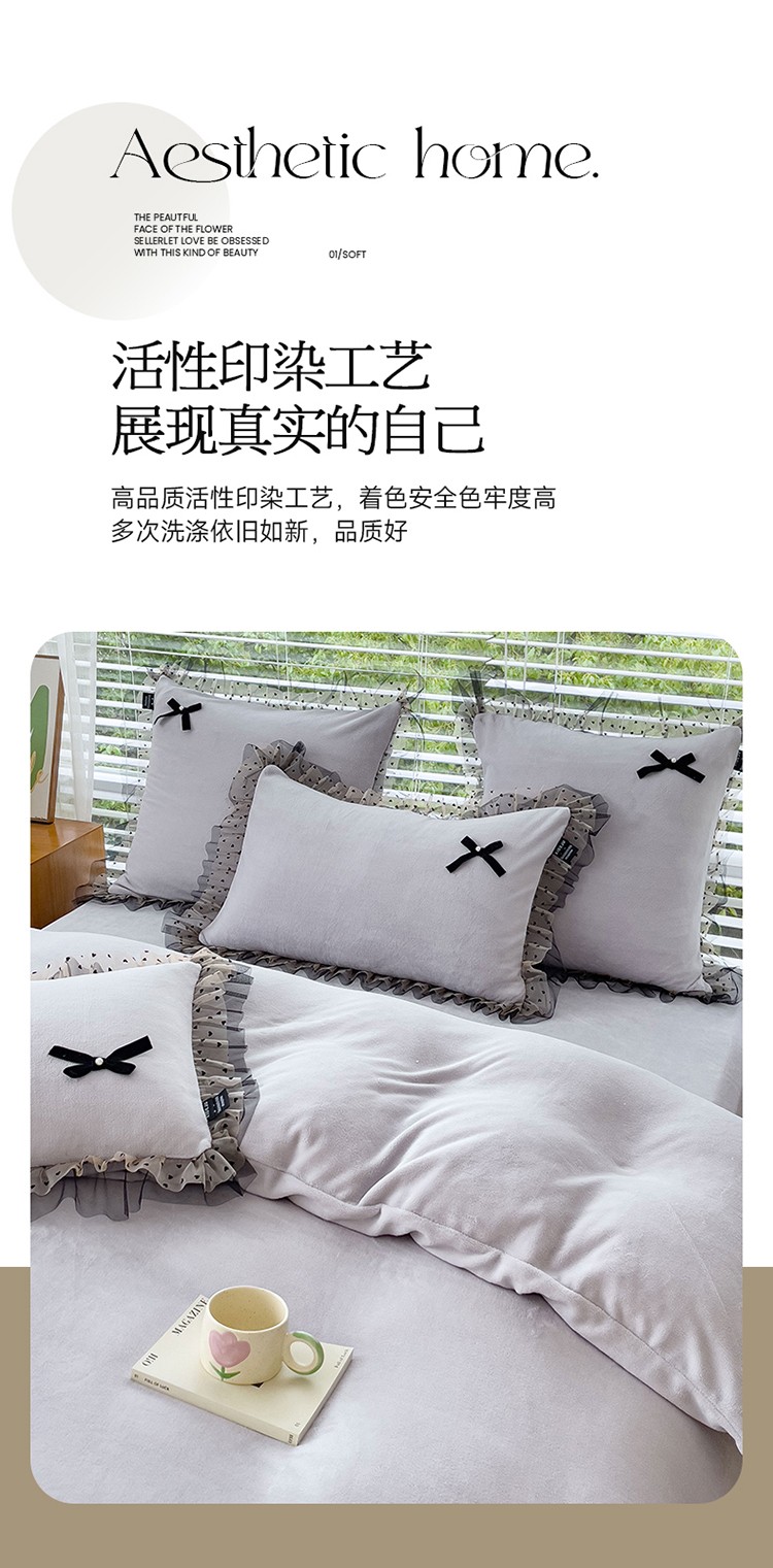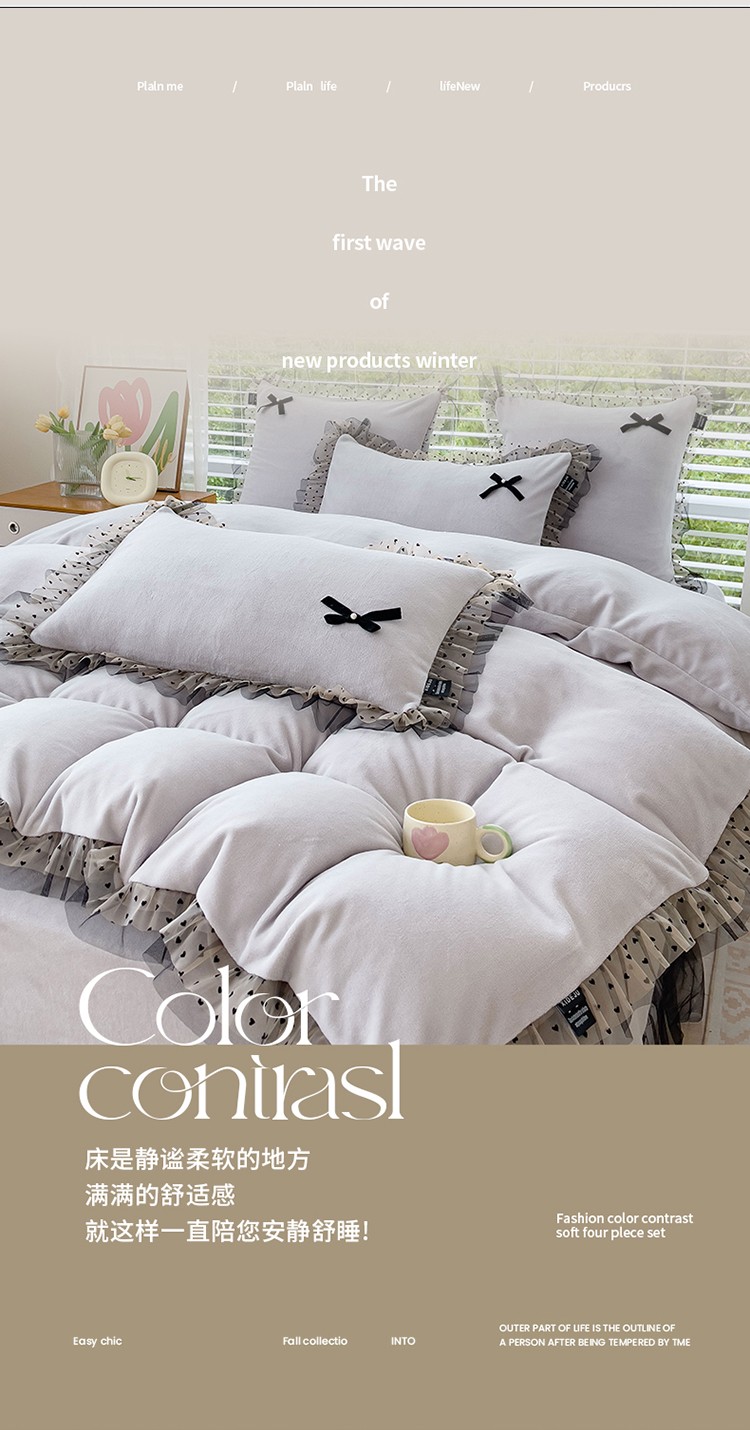 (总)2025新款牛奶绒拼纱四件套-洛可可,白色,粉紫,蓝色,浅灰色,水绿