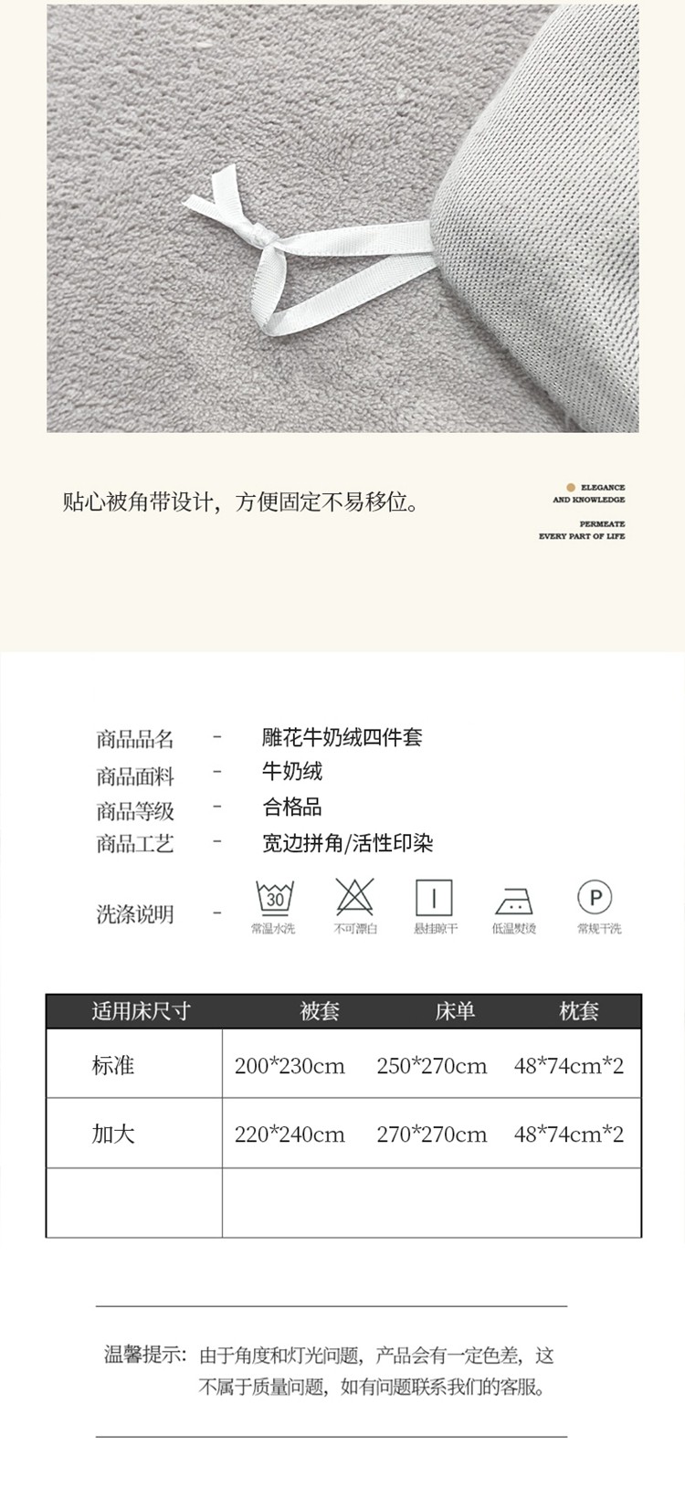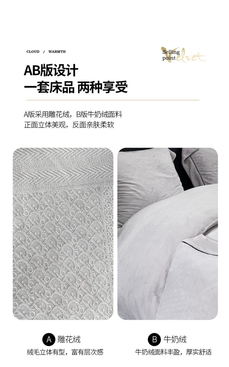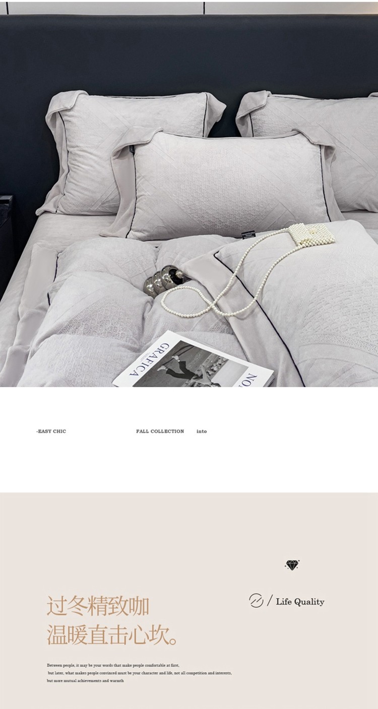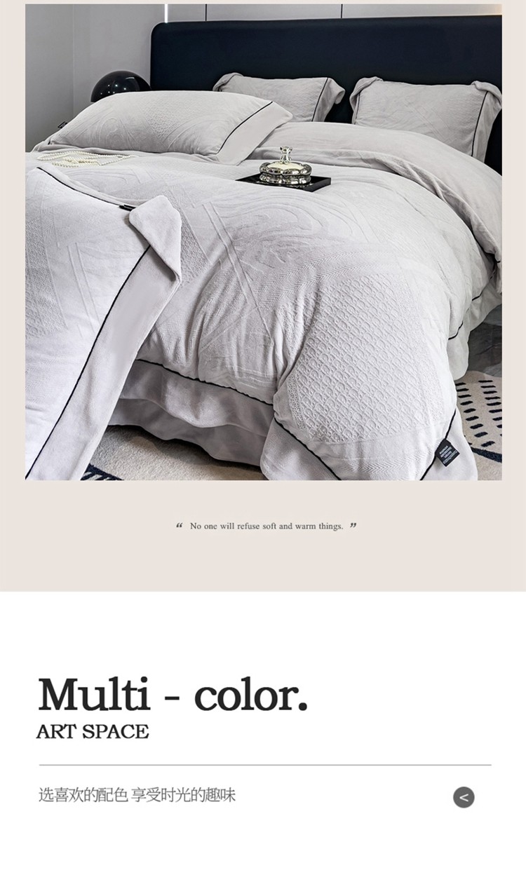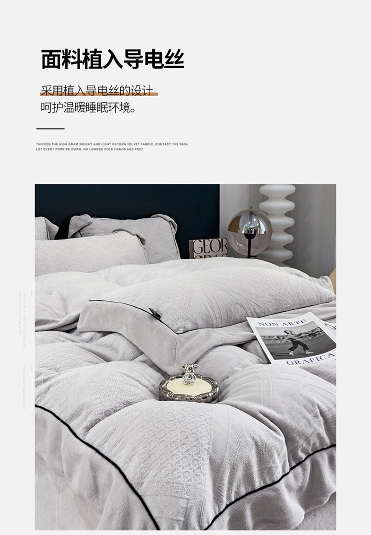 商品名称:2025新款牛奶绒雕花四件套-苏黎 浅灰色