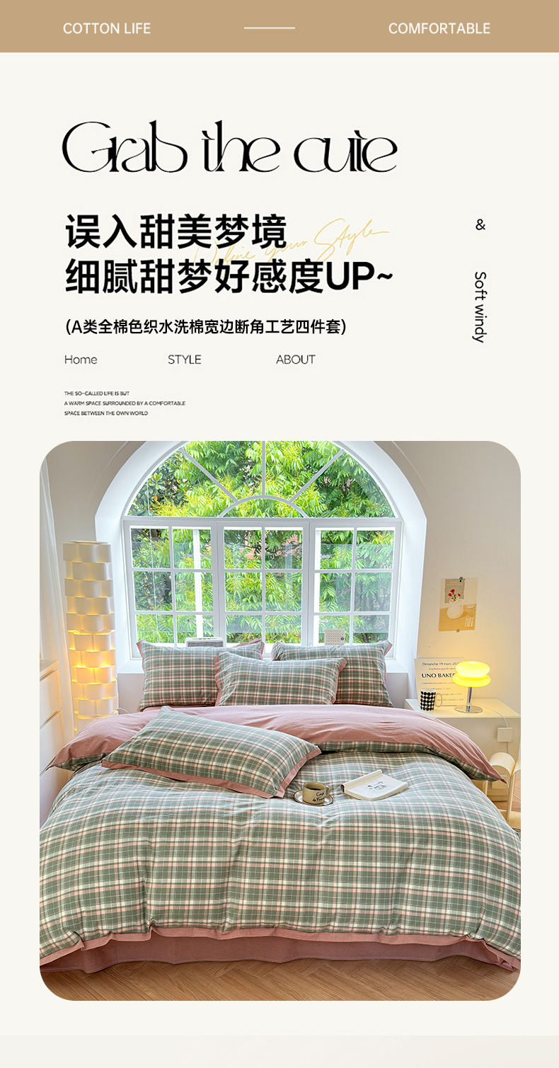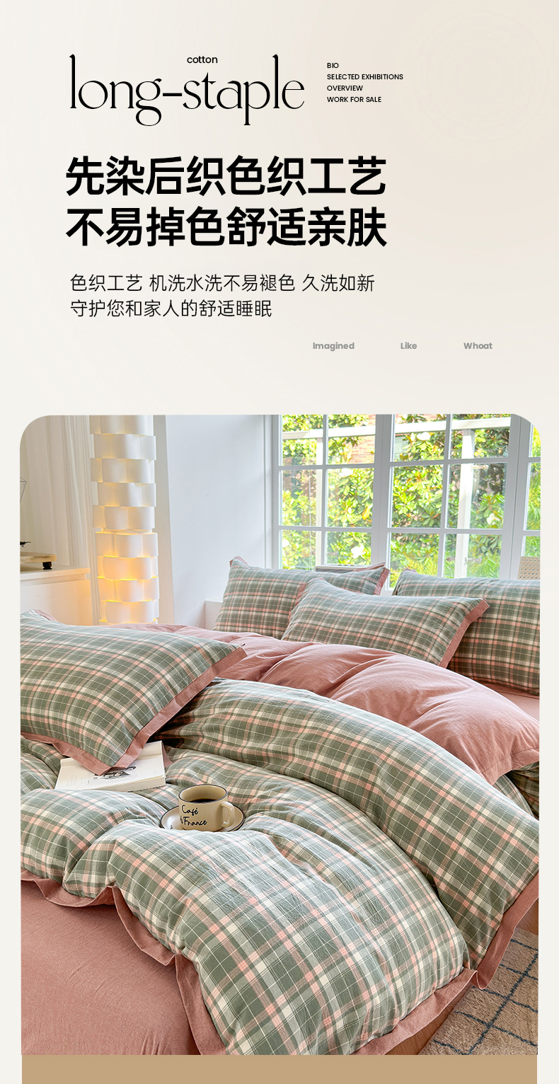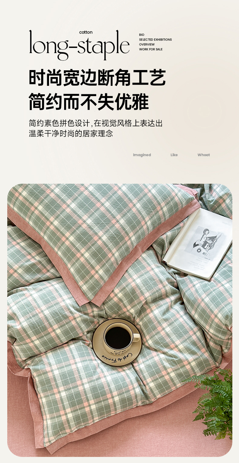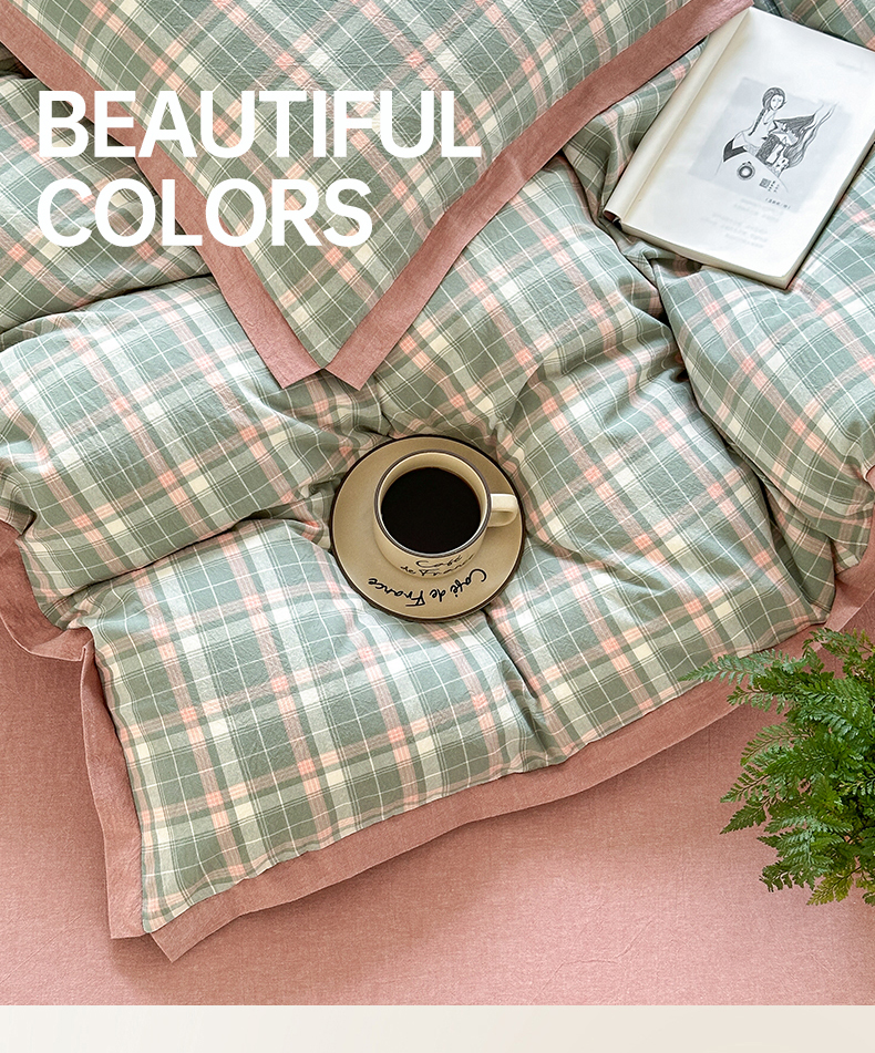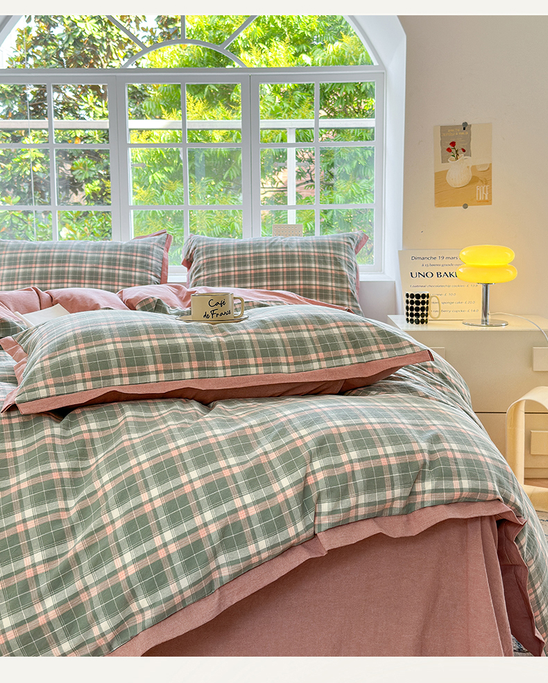 当前位置: 91家纺网 > 商品网购 > 床品套件 > 四件套 > 色织四件套 > 晚依家纺 2025新款全棉色织水洗棉宽边断角四件套 小幸运-绿豆沙