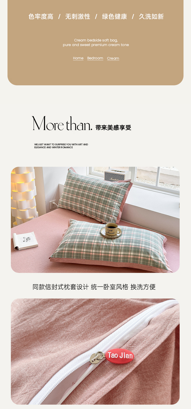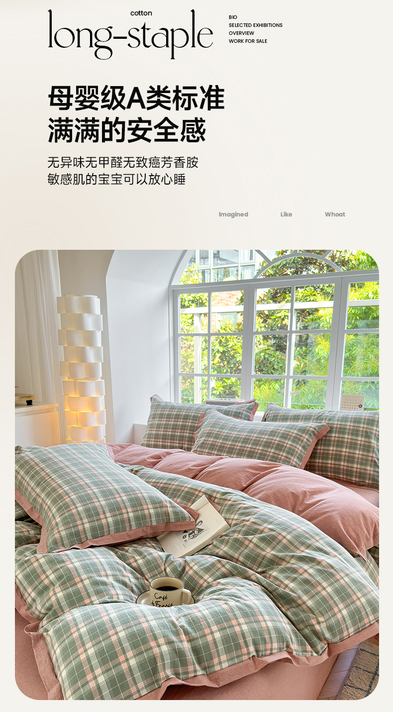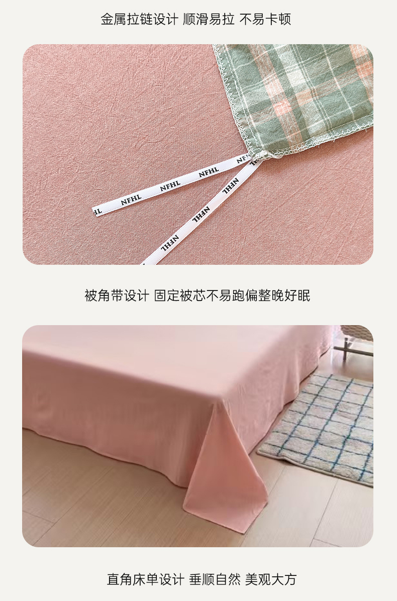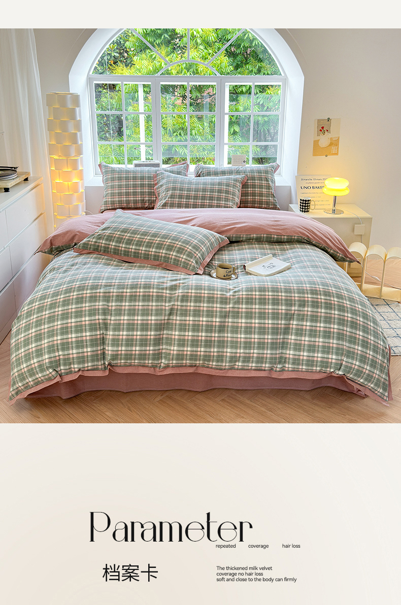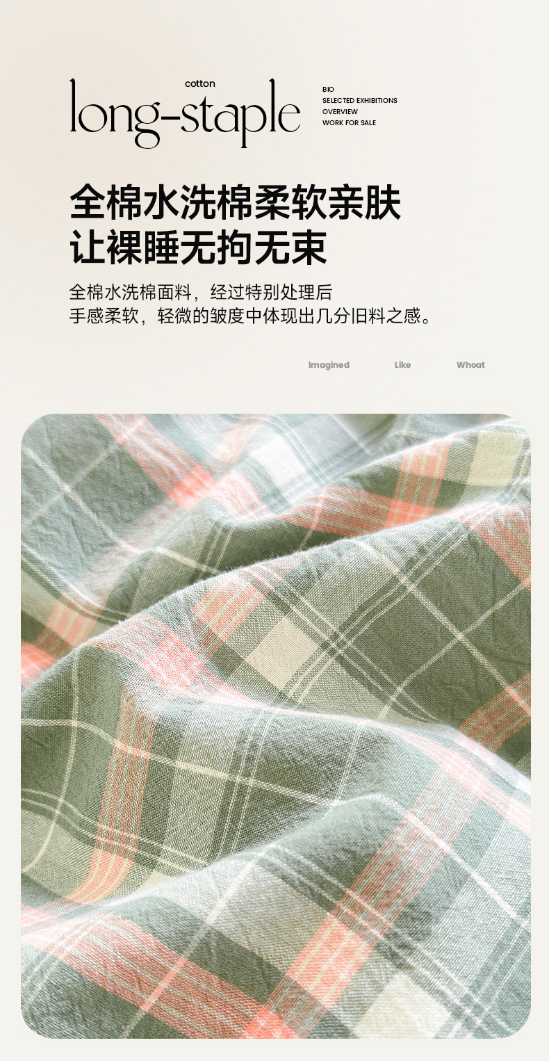 当前位置: 91家纺网 > 商品网购 > 床品套件 > 四件套 > 色织四件套 > 晚依家纺 2025新款全棉色织水洗棉宽边断角四件套 小幸运-绿豆沙