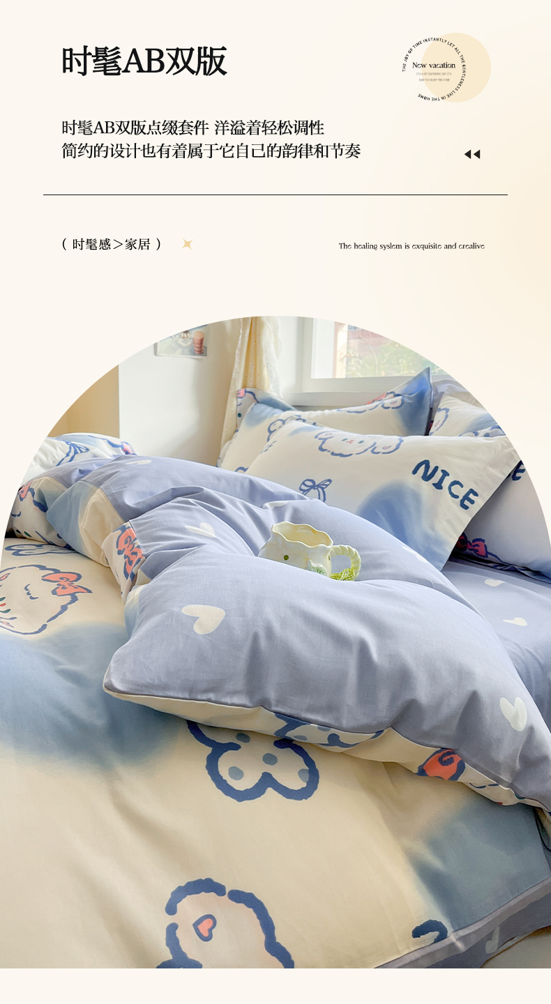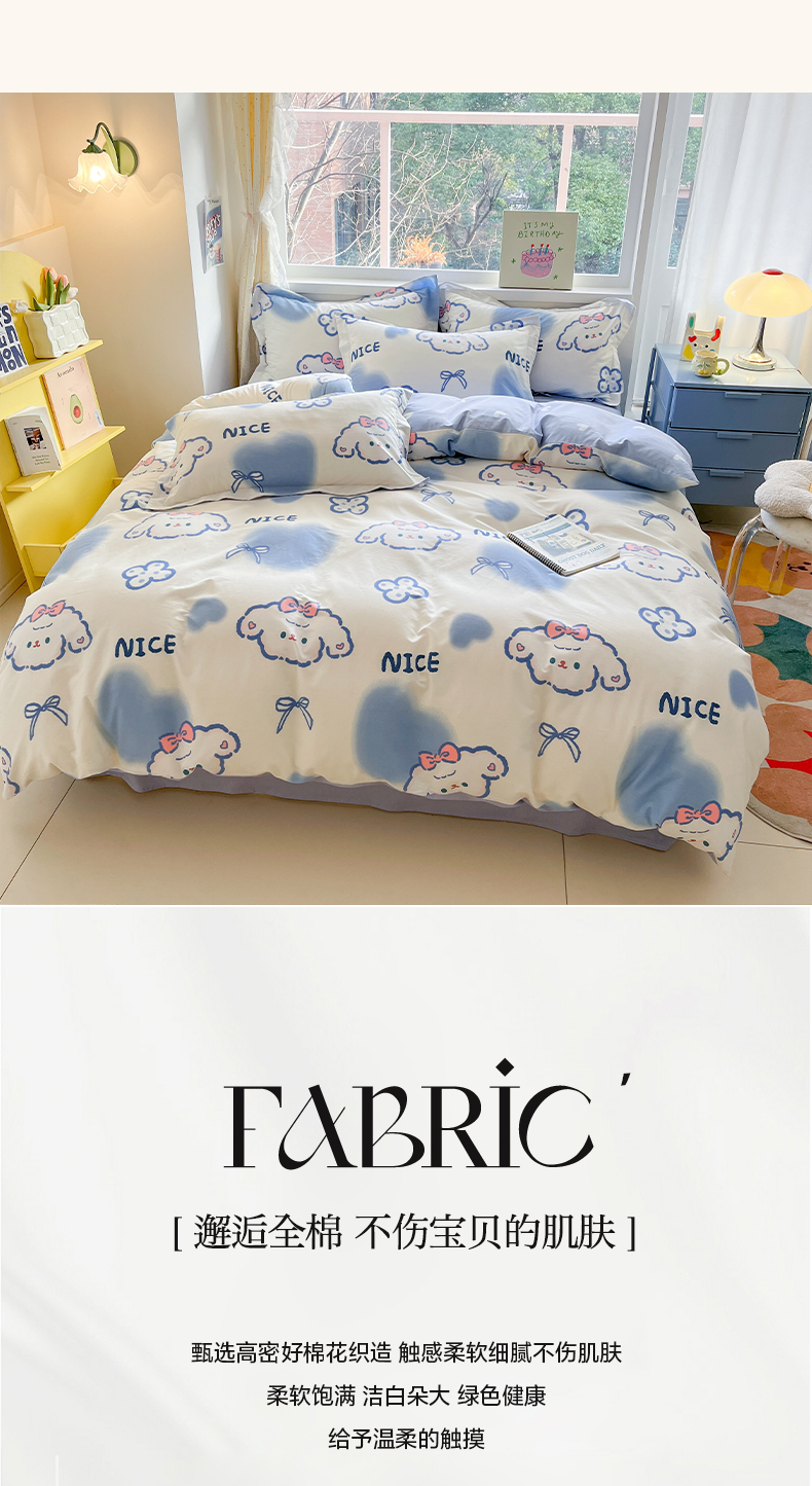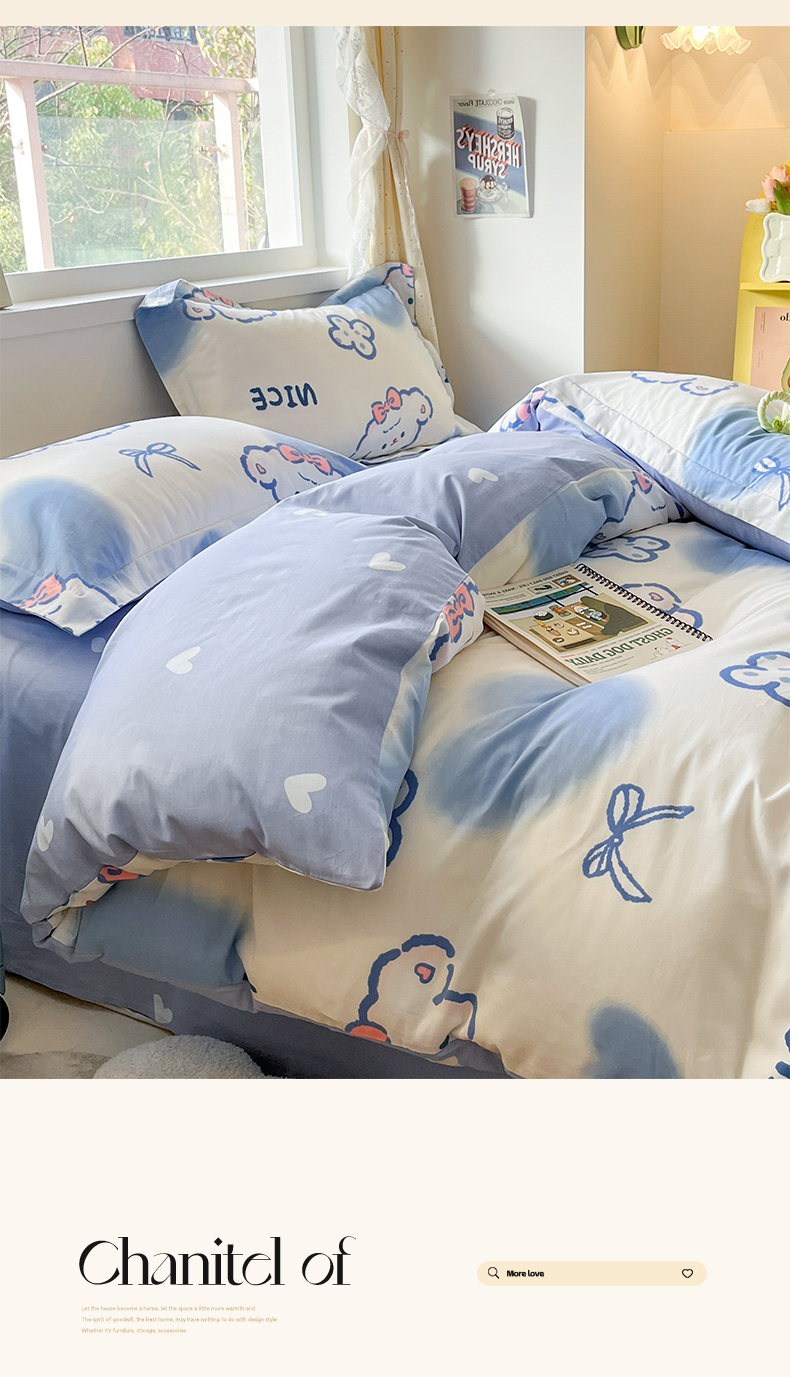 当前位置: 91家纺网 > 商品网购 > 床品套件 > 四件套 > 其它四件套 > 2024新款全棉小清新印花单品套件--四件套 玉桂兔