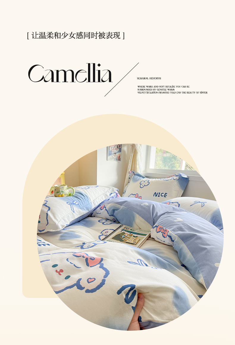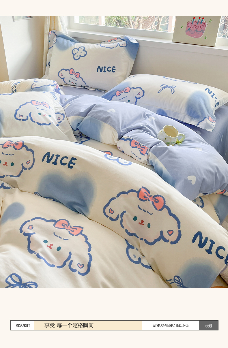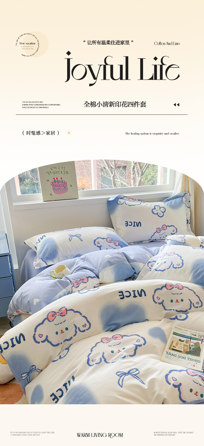 当前位置: 91家纺网 > 商品网购 > 床品套件 > 四件套 > 其它四件套 > 2024新款全棉小清新印花单品套件--四件套 玉桂兔
