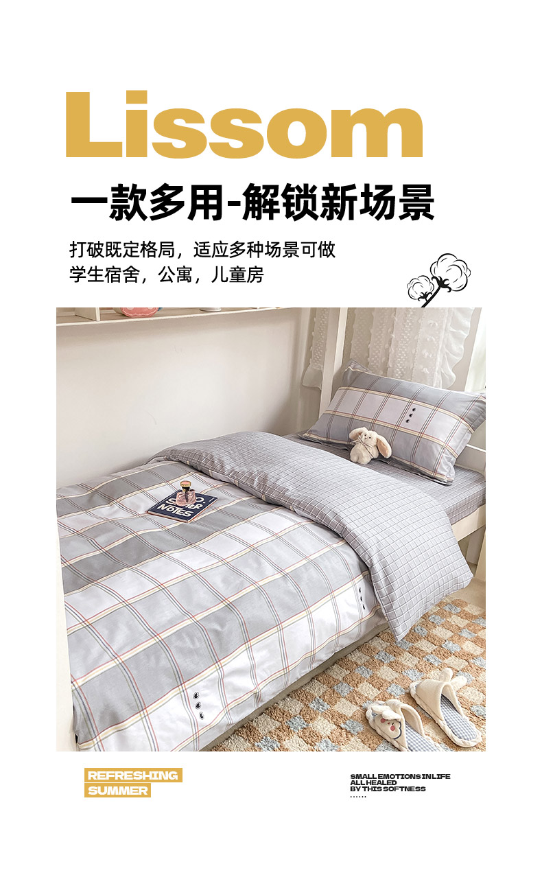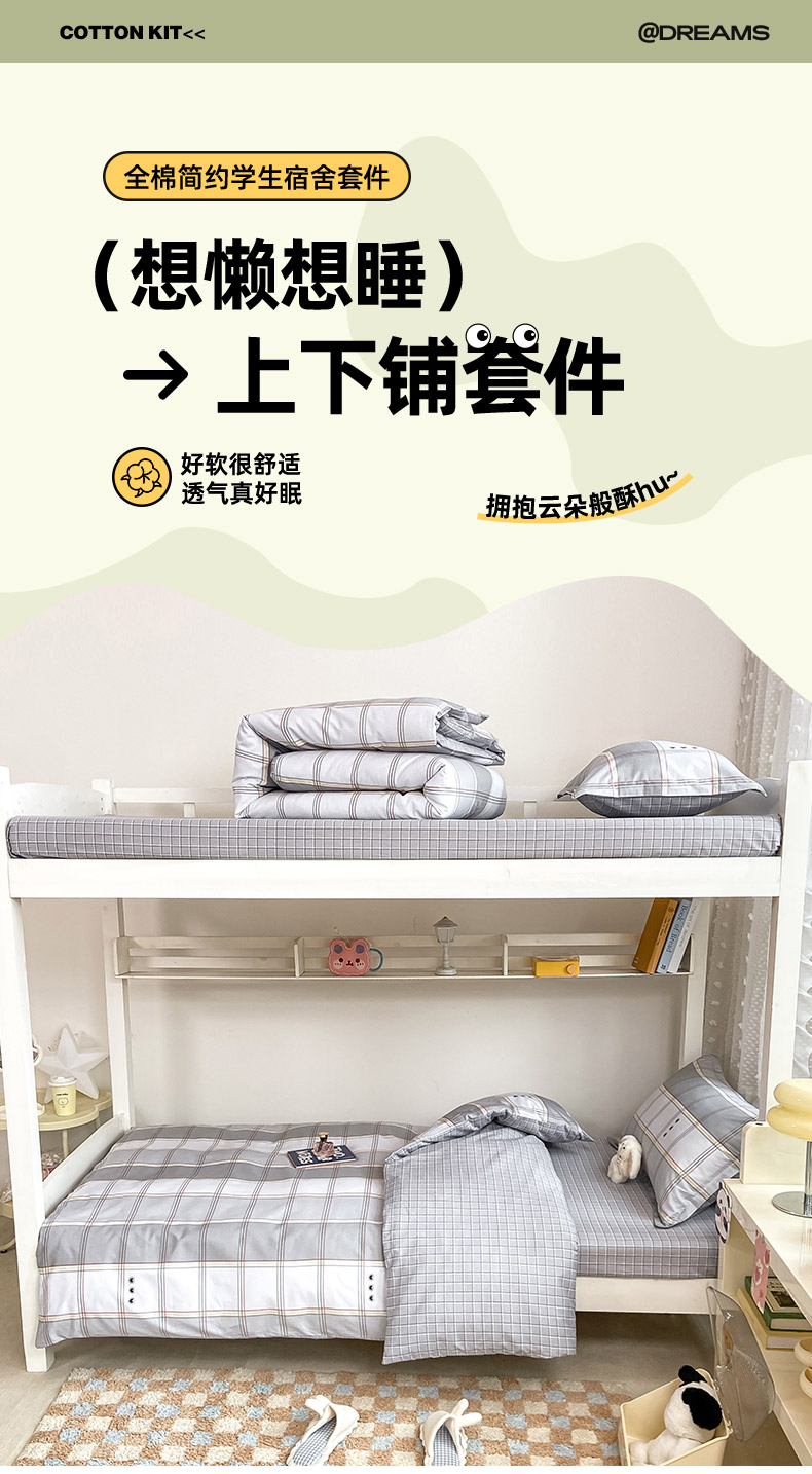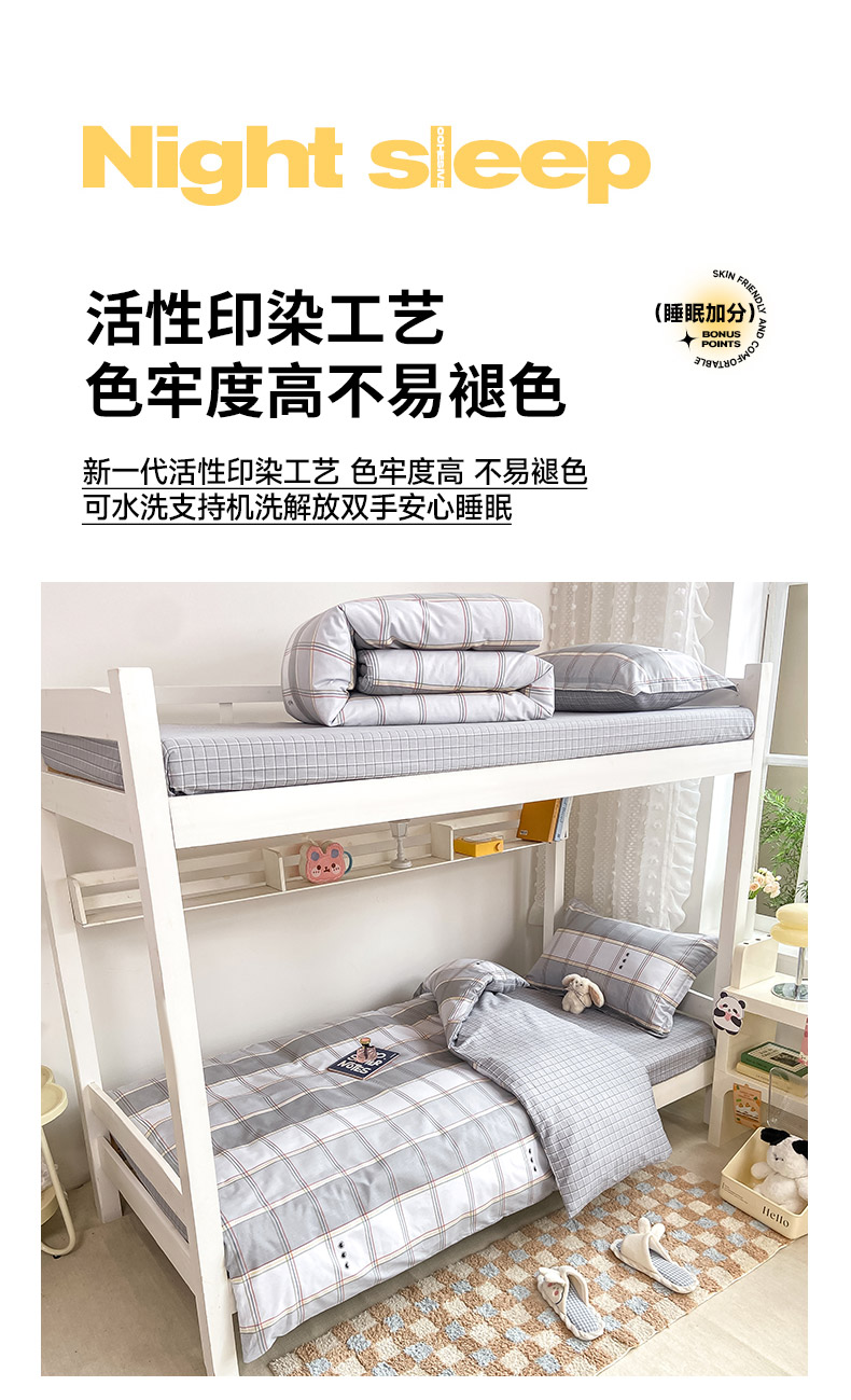 商品名称:好眠好梦家纺 2024新款学生宿舍全棉三件套 闲趣-灰
