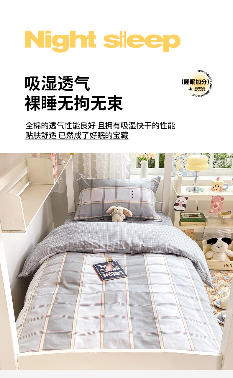 好眠好梦家纺 2024新款学生宿舍全棉三件套 闲趣-灰