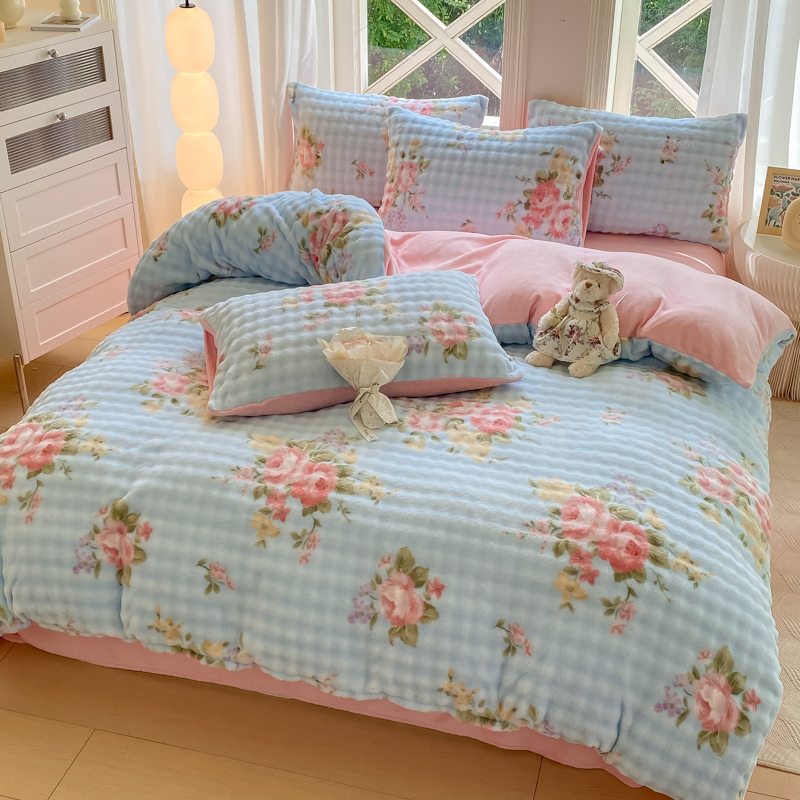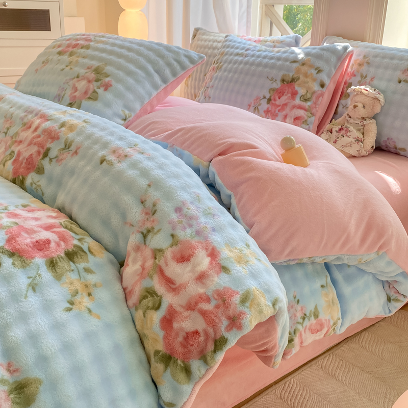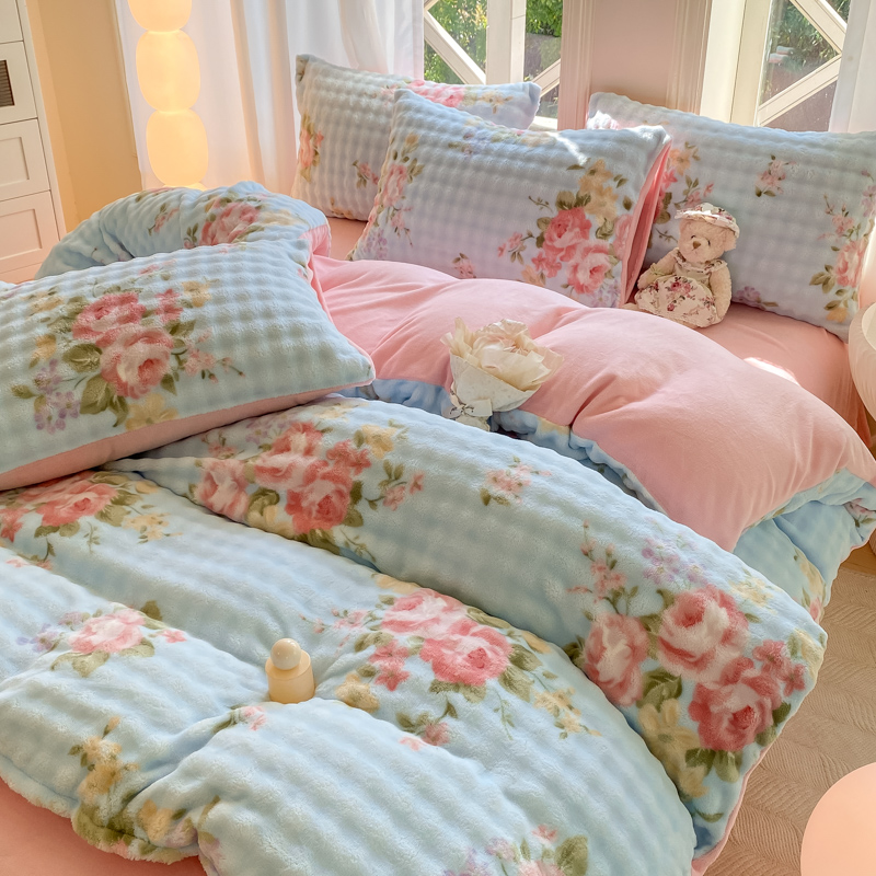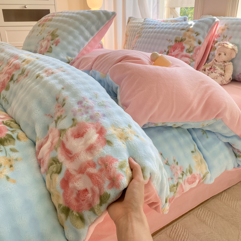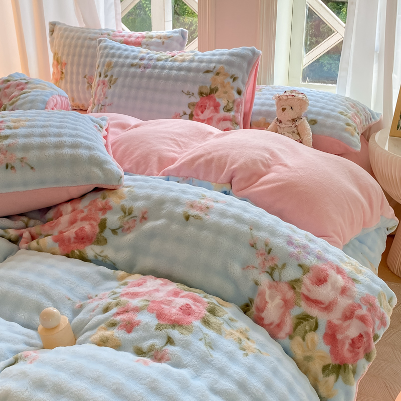 仟网汇 2024爆款牛奶绒泡泡绒兔毛绒四件套 泡泡绒花-花开富贵