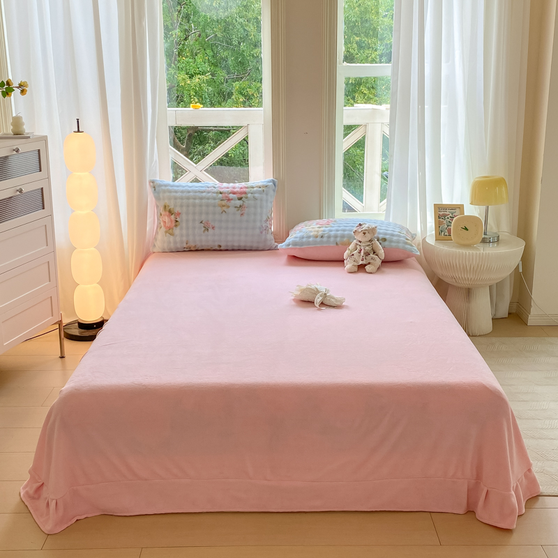 (总)仟网汇 2025新款热款剪花绒毛毛球绒水晶绒四件套,粉色