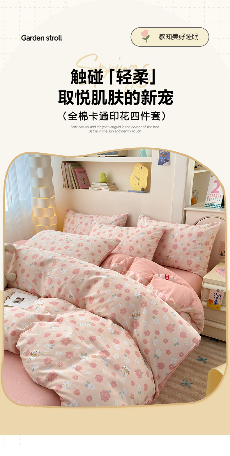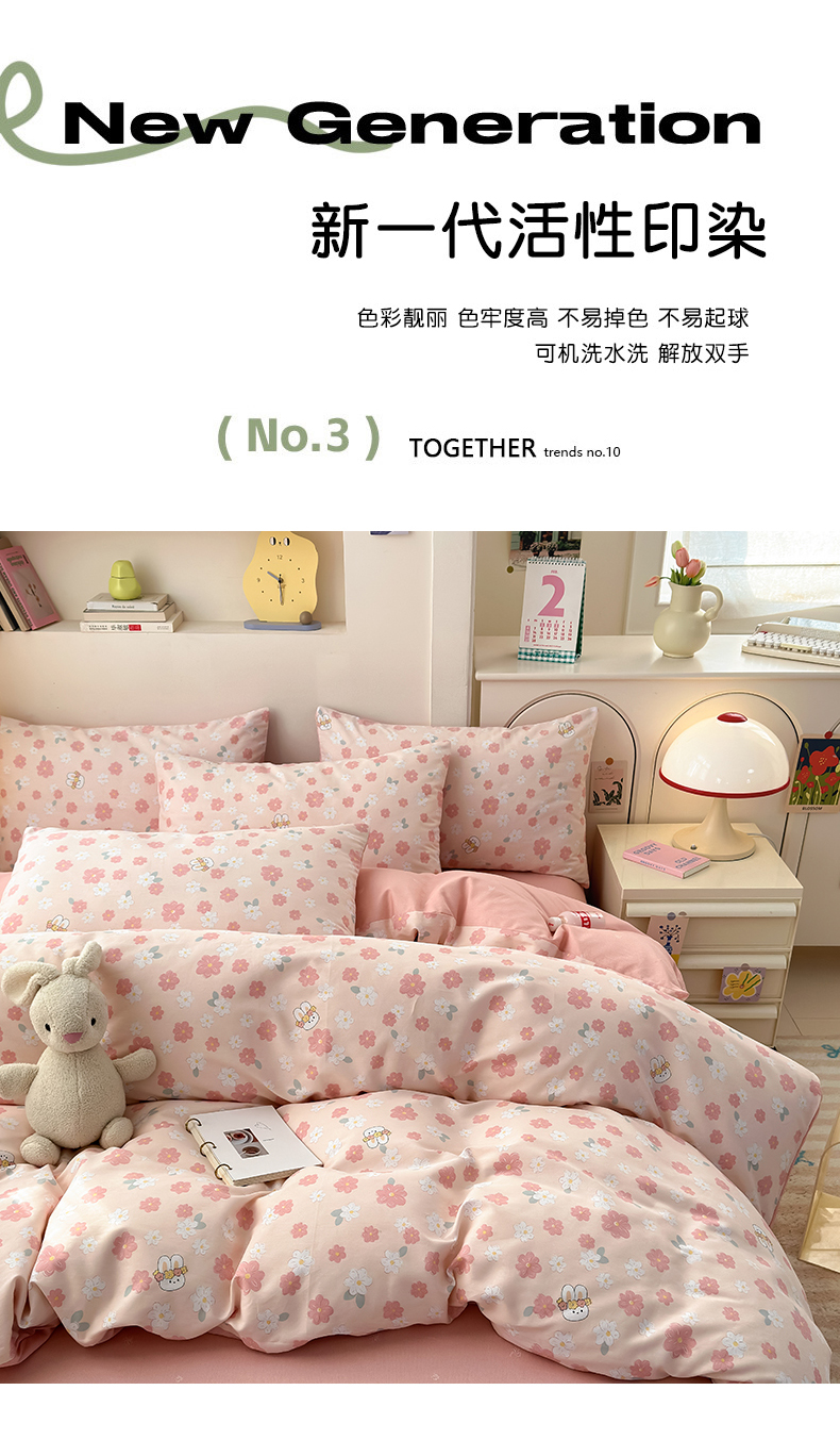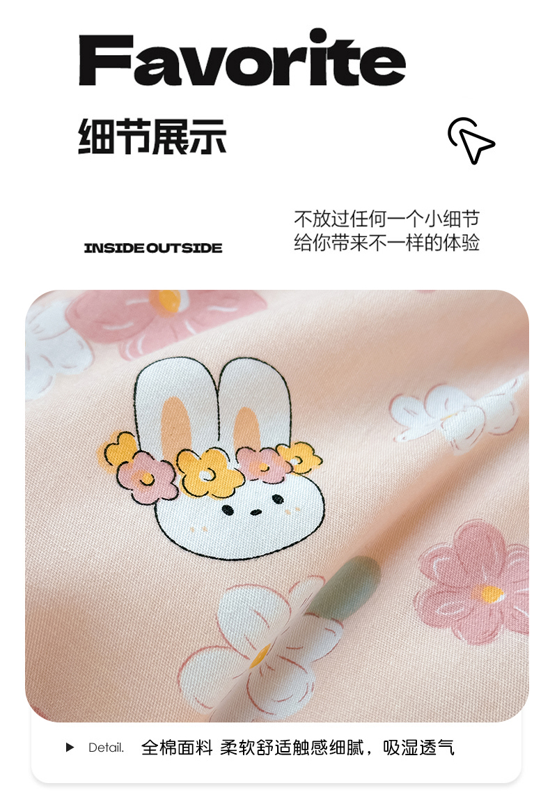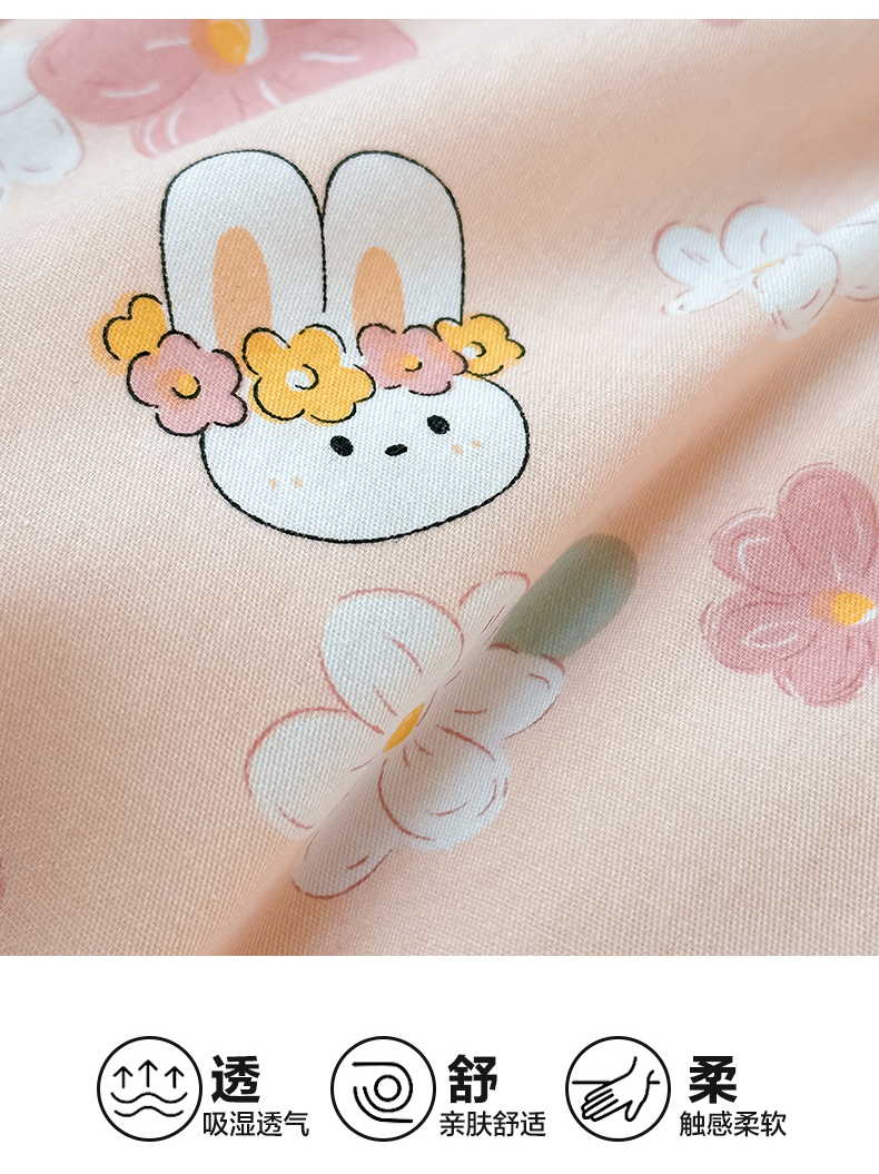 商品名称:清雅福 2025新款13070全棉小清新四件套 栀香小兔·粉
