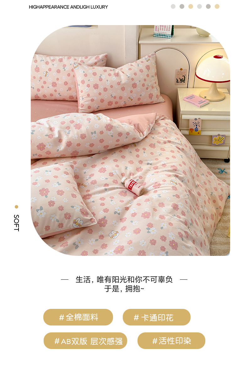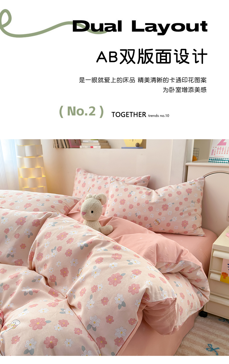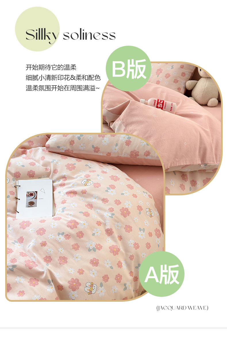 商品名称:清雅福 2025新款13070全棉小清新四件套 栀香小兔·粉