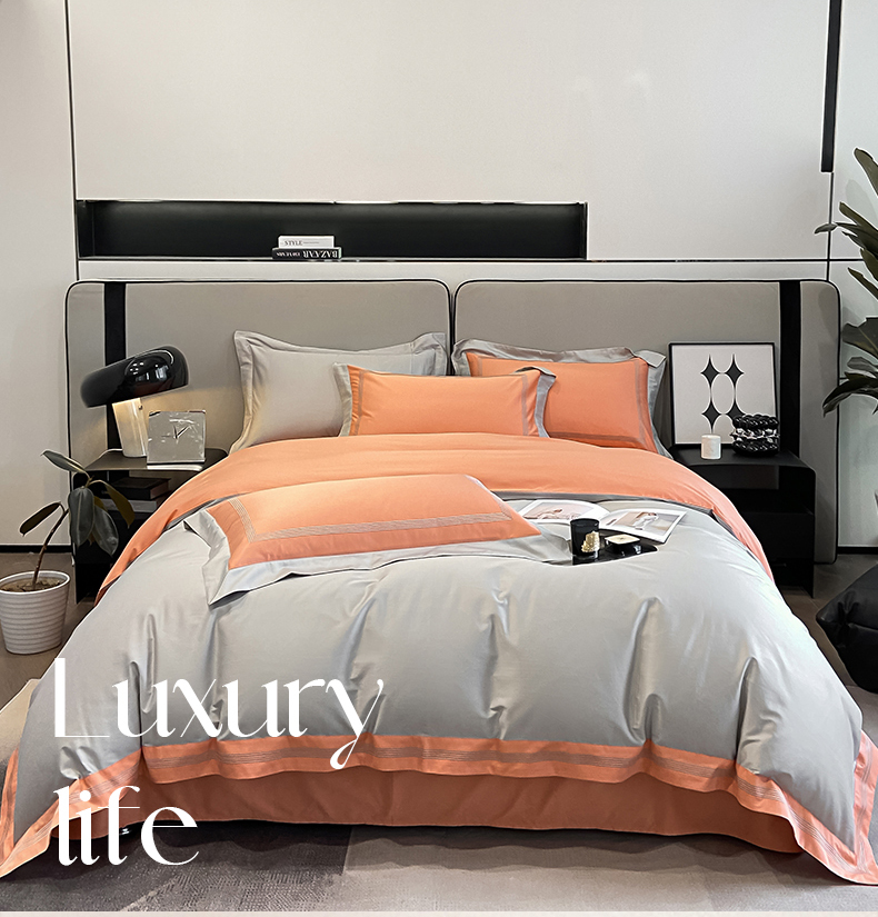 (总)桃园 2025新款全棉长绒棉刺绣绣花四件套-西西里系列,飘蓝,轻奢粉,绅士灰,香槟