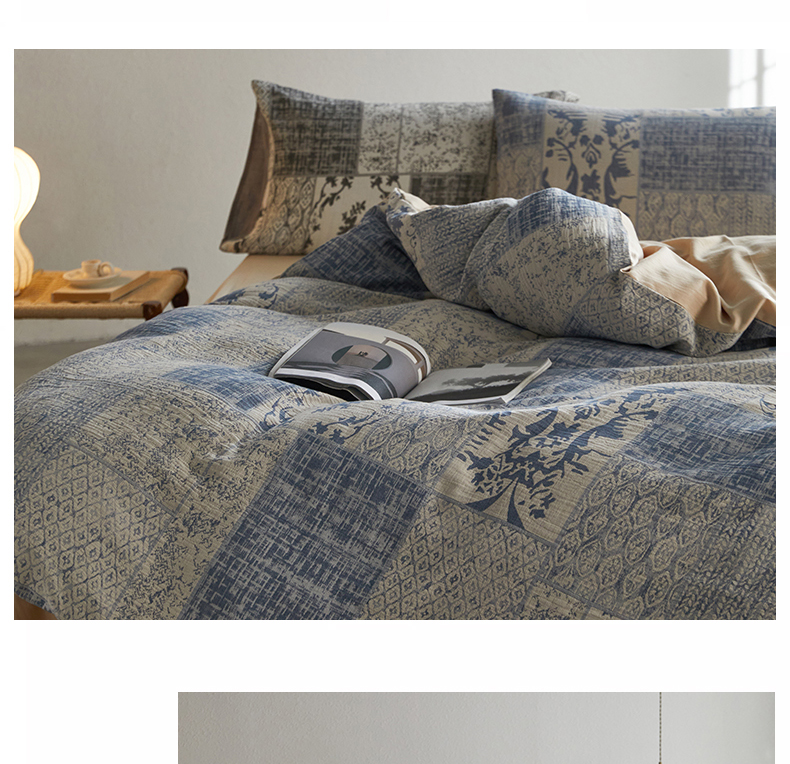 山舍家居 2025新款全棉纯棉色织纱布四件套系列-树下萨瓦呢(棚拍二) 树下萨瓦呢-蓝