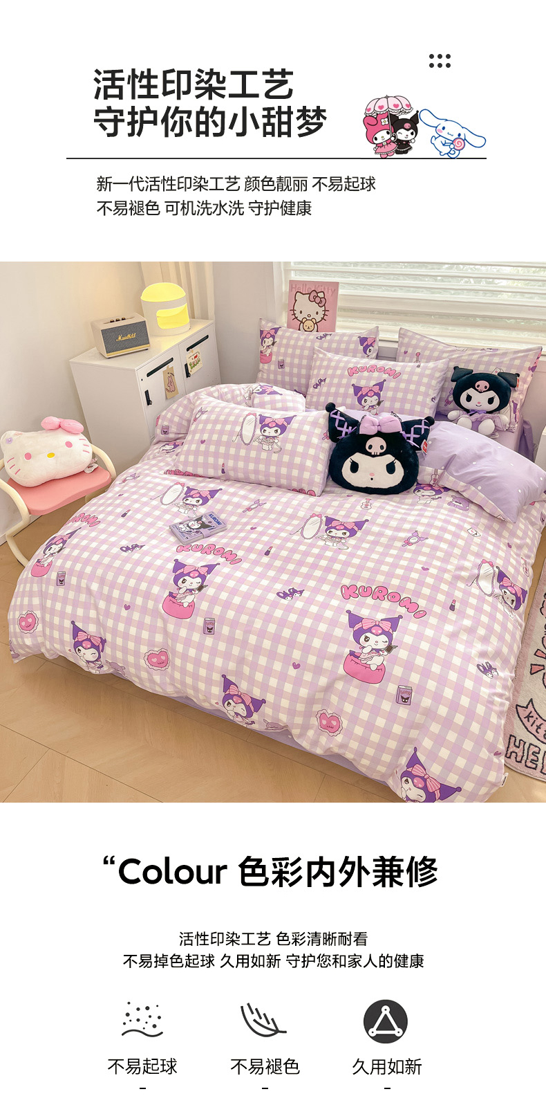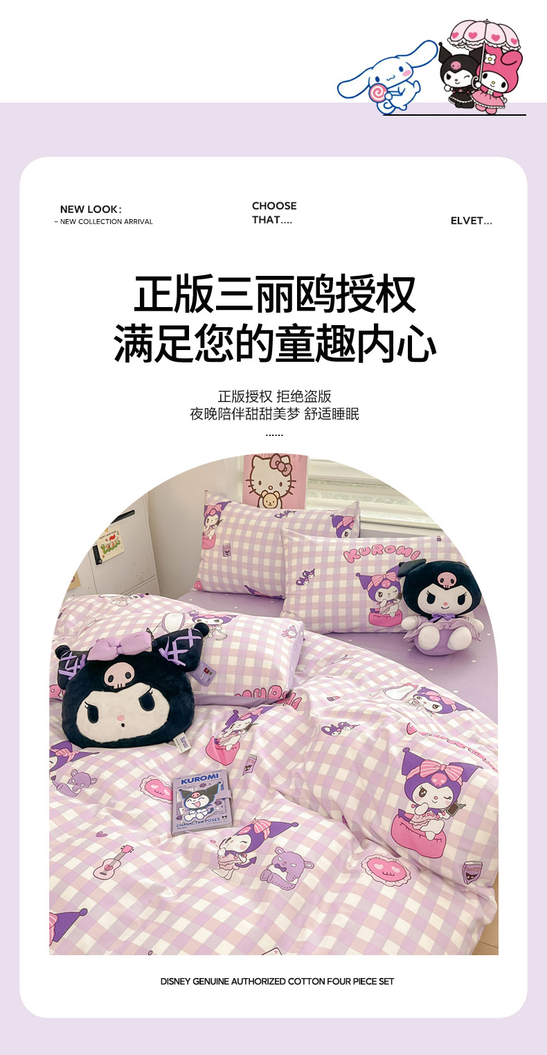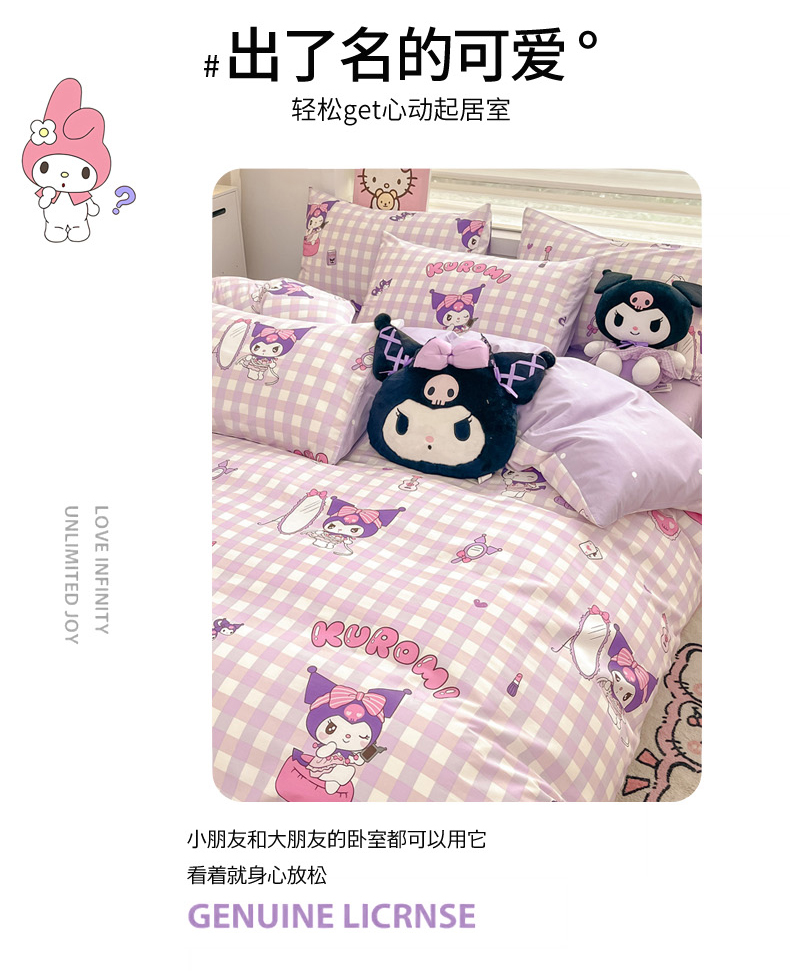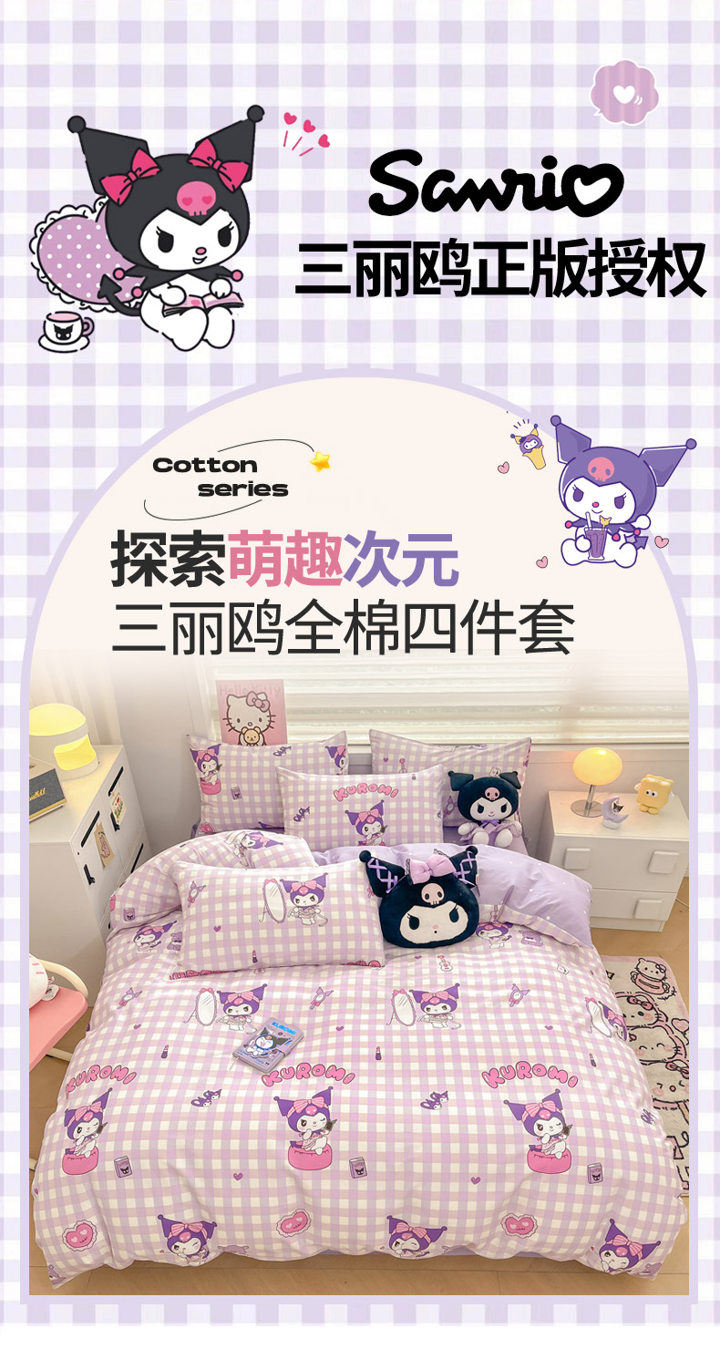 当前位置: 91家纺网 > 商品网购 > 床品套件 > 四件套 > 全棉普通四件套 > 暮思家居 2025新款正版授权三丽鸥小版全棉四件套系列(第二批) 格子库洛米