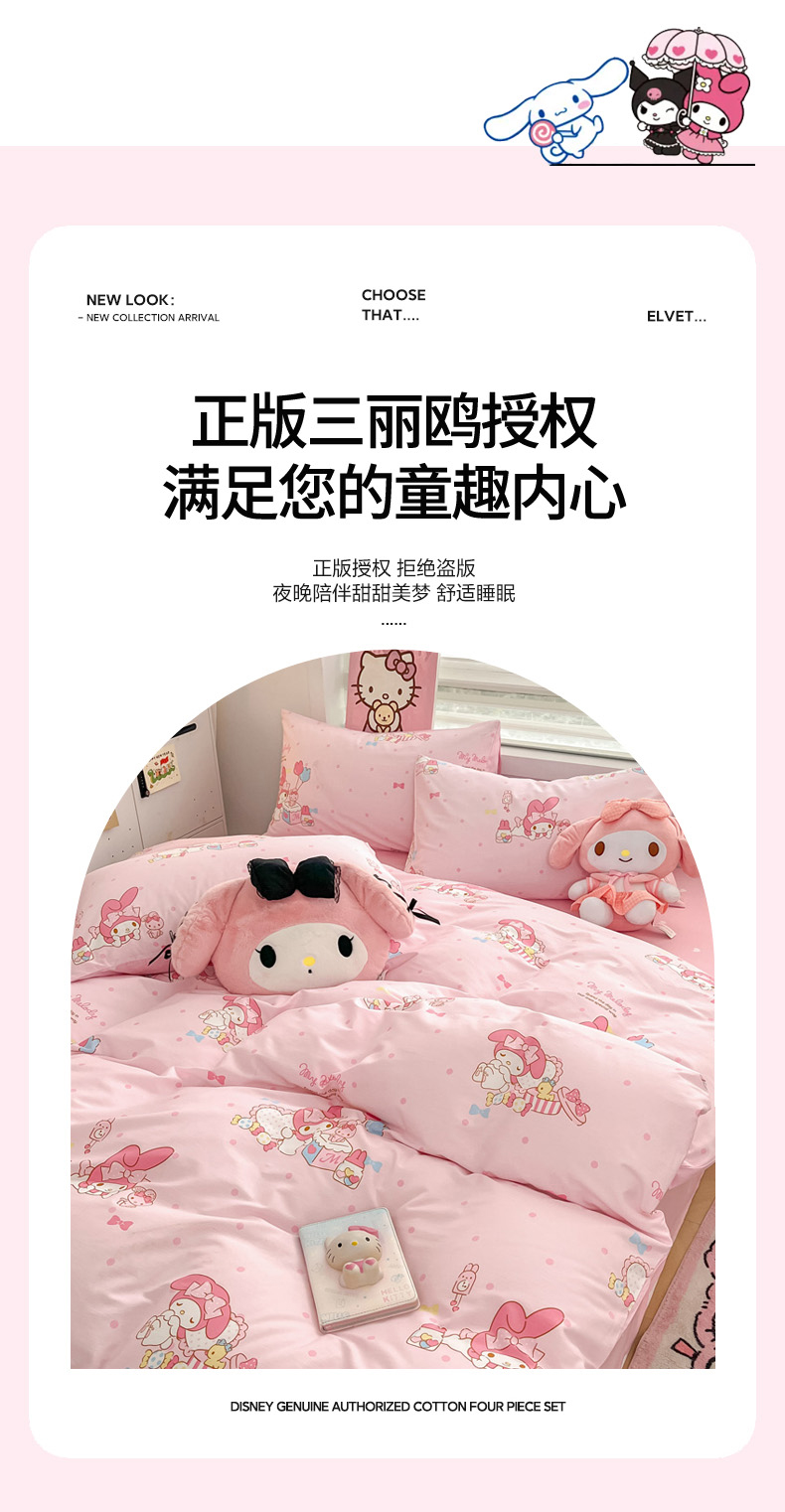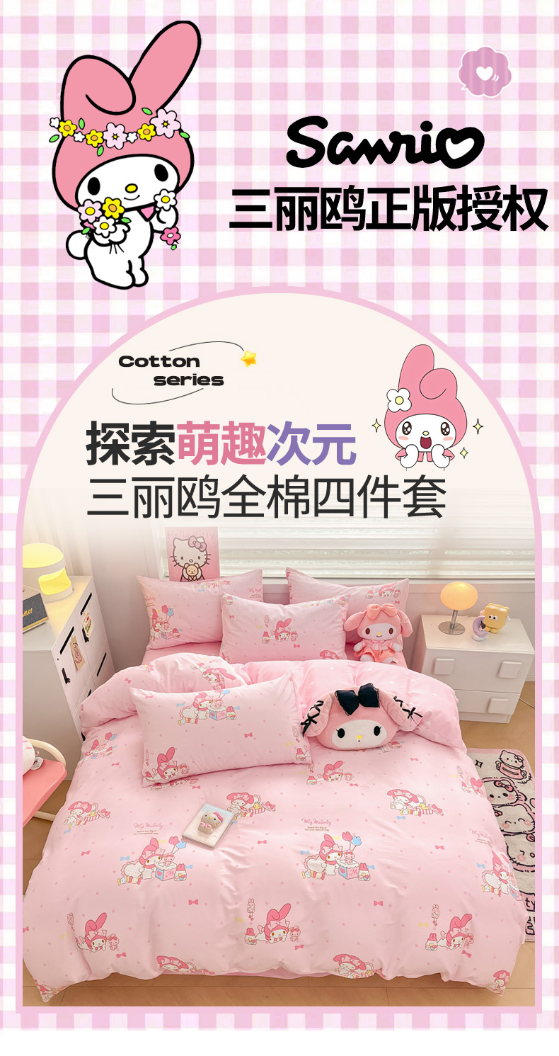 当前位置: 91家纺网 > 商品网购 > 床品套件 > 四件套 > 全棉普通四件套 > 暮思家居 2025新款正版授权三丽鸥小版全棉四件套系列(第二批) 童趣美乐蒂