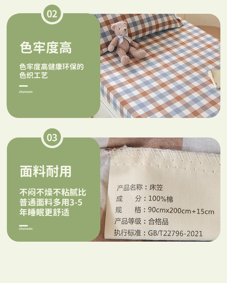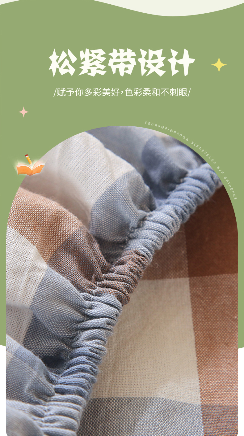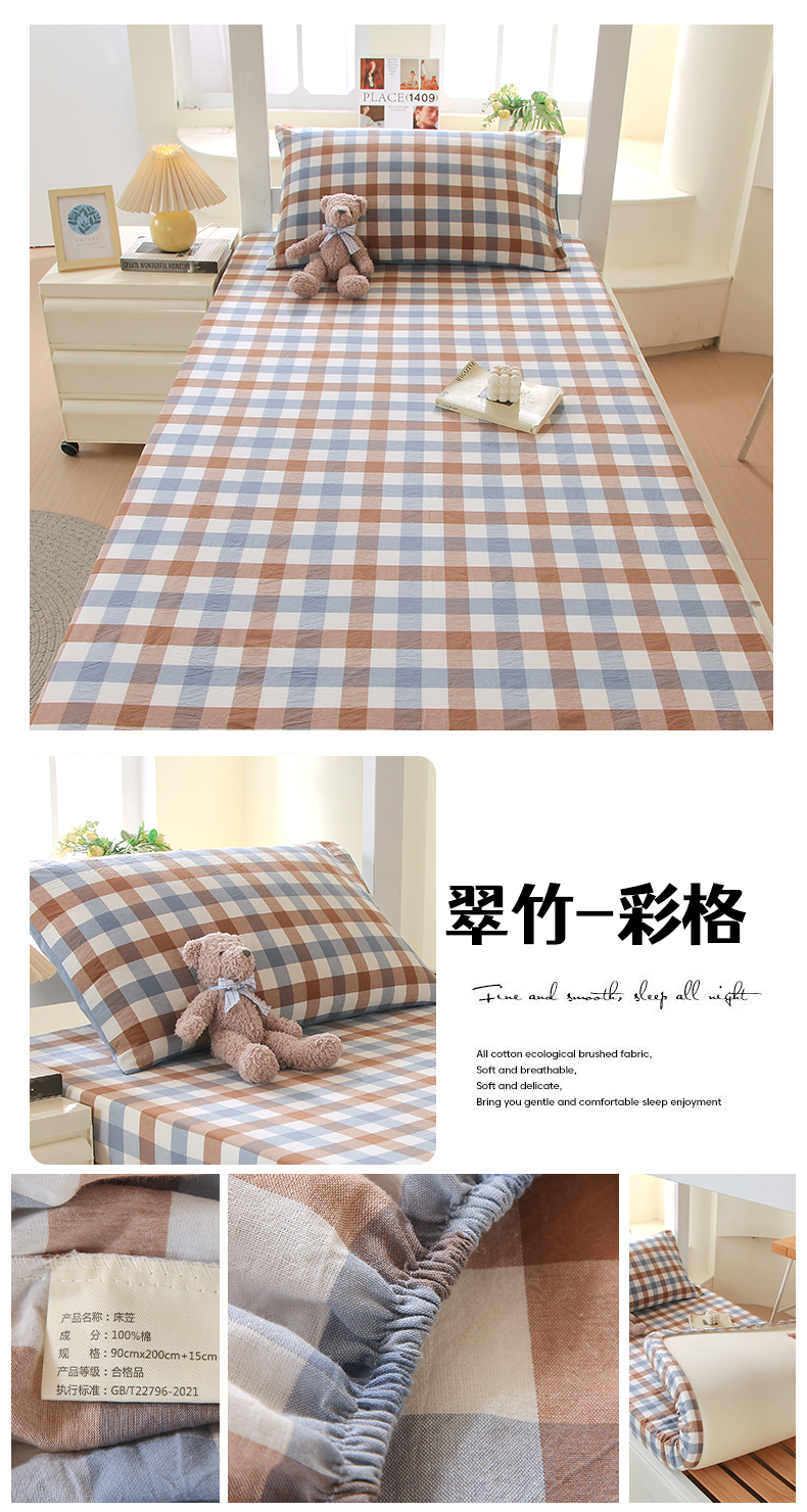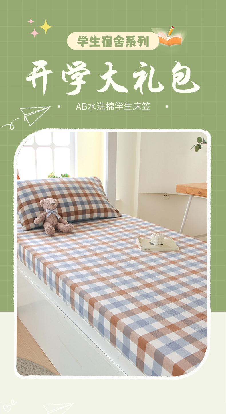 • 91家纺网 家纺一手货源 找家纺 春皖家纺 2025新款学生季全棉纯棉色织AB版水洗棉单品系列-单床笠 床笠单件 翠竹-彩格