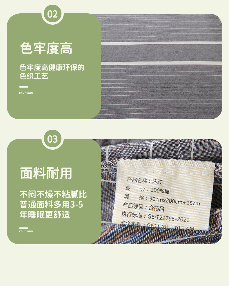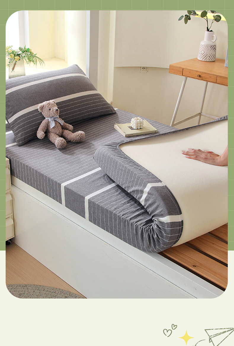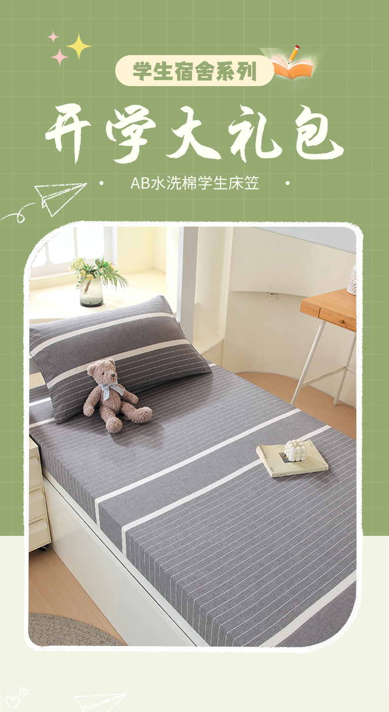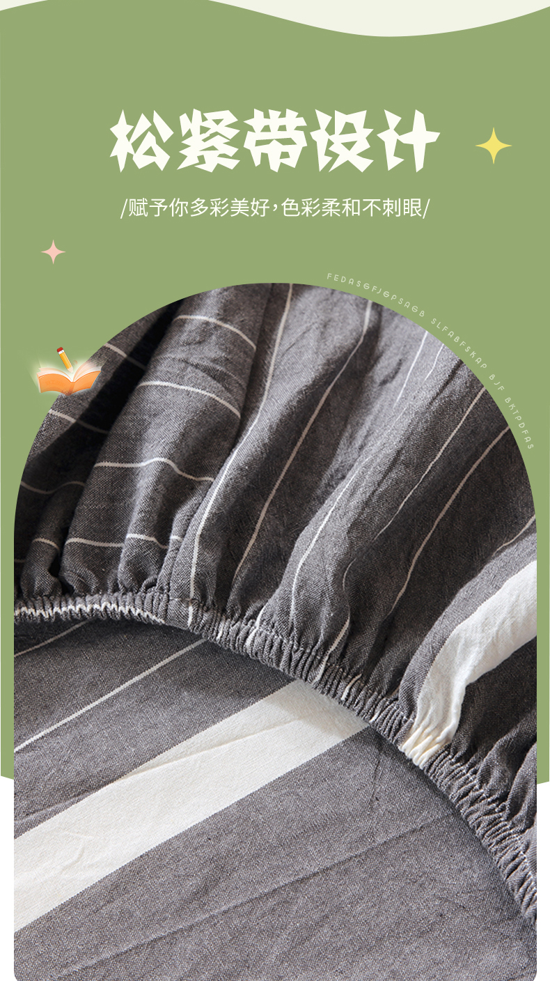 • 91家纺网 家纺一手货源 找家纺 春皖家纺 2025新款学生季全棉纯棉色织AB版水洗棉单品系列-单床笠 床笠单件 素雅-灰条