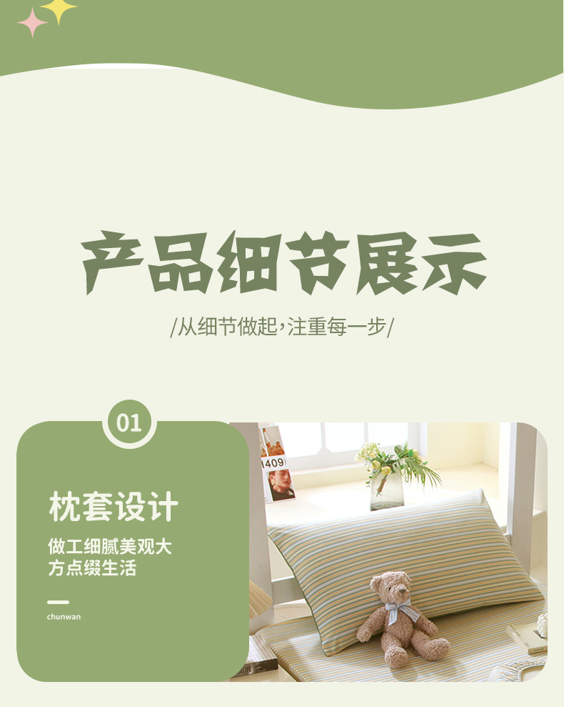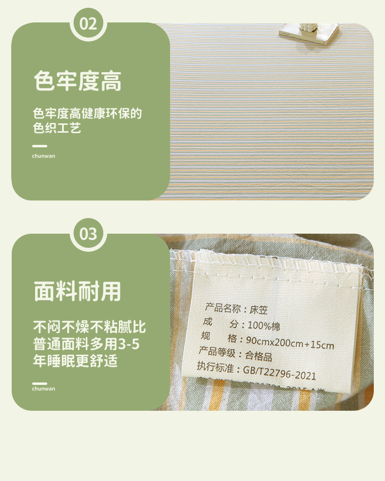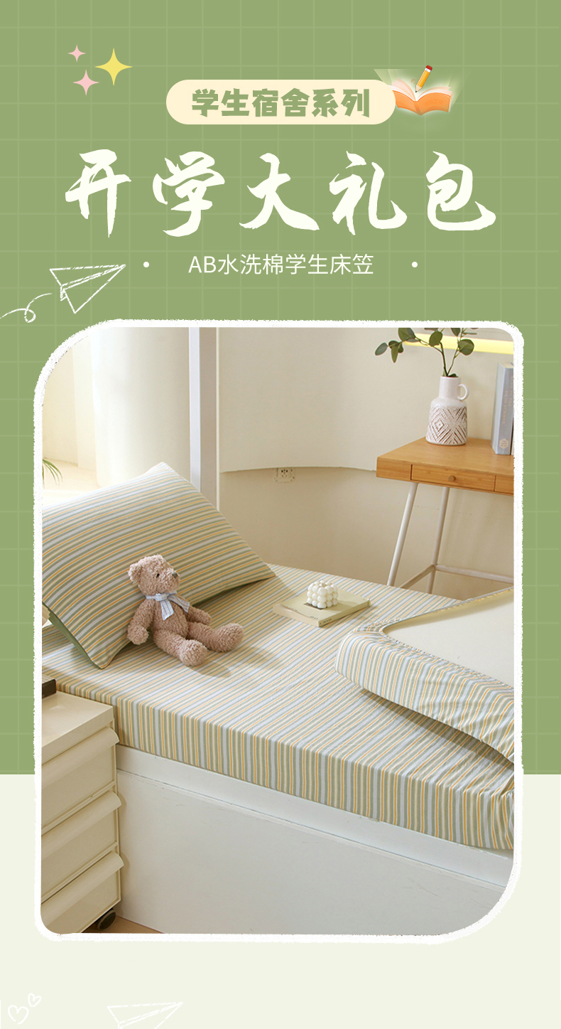 • 91家纺网 家纺一手货源 找家纺 春皖家纺 2025新款学生季全棉纯棉色织AB版水洗棉单品系列-单床笠 床笠单件 素雅-绿条