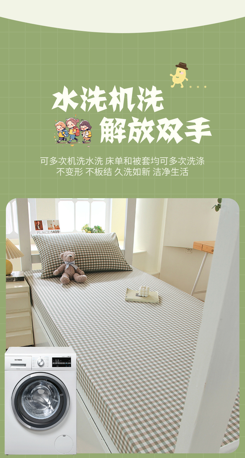 当前位置: 91家纺网 > 商品网购 > 床上用品 > 床笠 > 春皖家纺 2025新款学生季全棉纯棉色织AB版水洗棉单品系列-单床笠 床笠单件 素雅-绿条