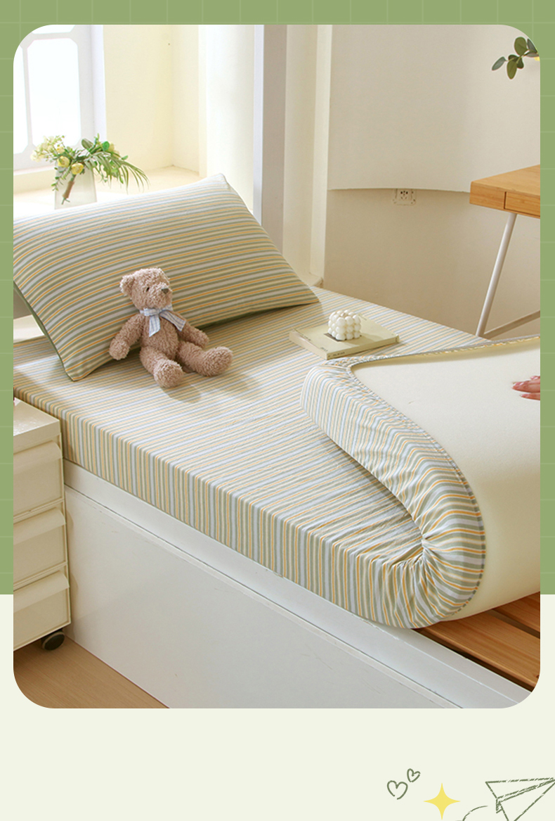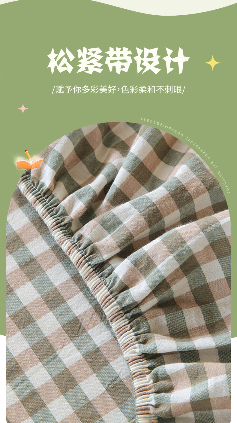春皖家纺 2025新款学生季全棉纯棉色织AB版水洗棉单品系列-单床笠 床笠单件 素雅-绿条