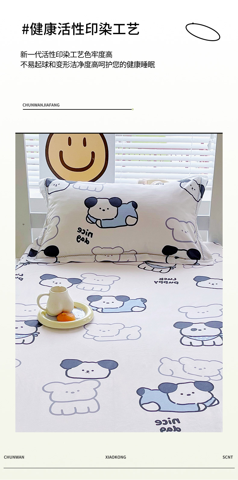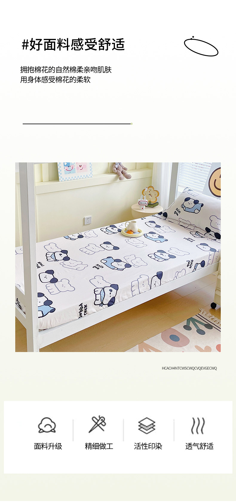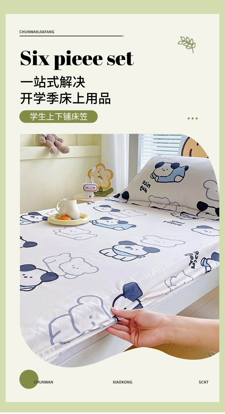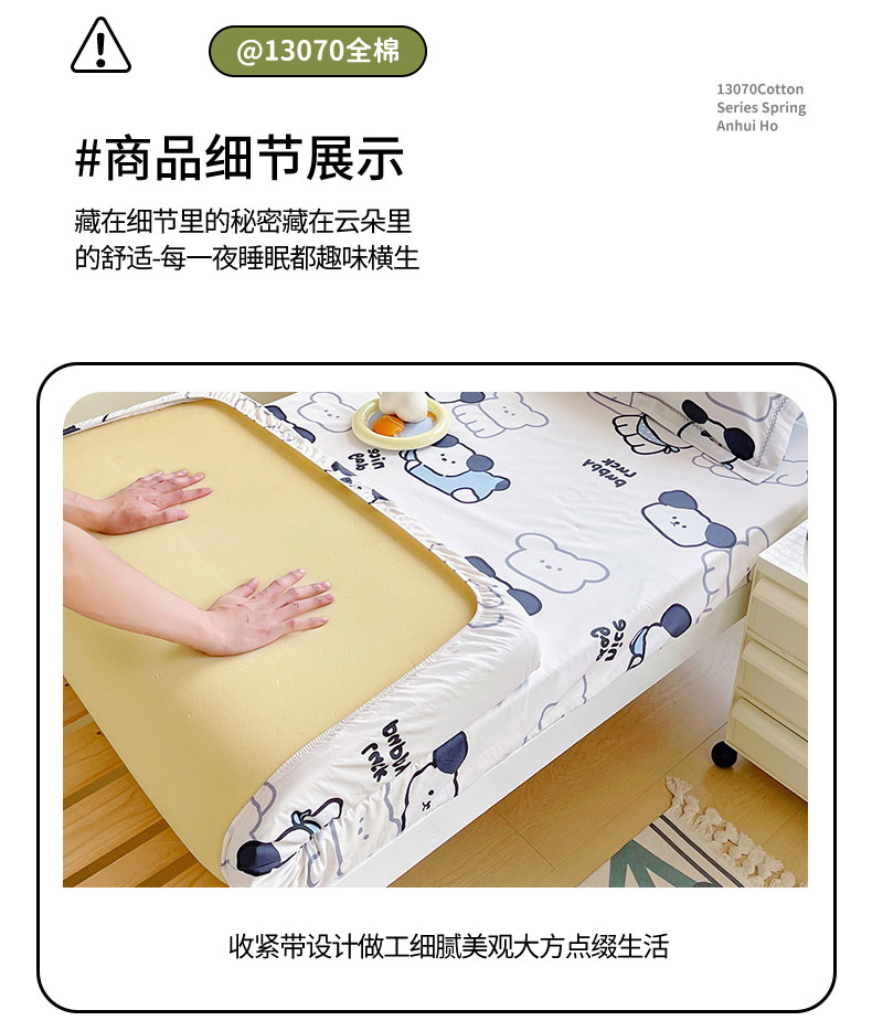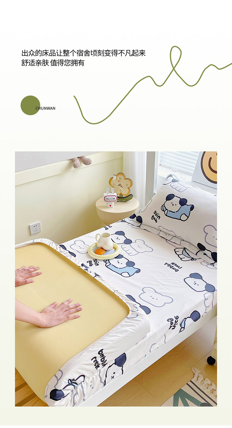 • 91家纺网 家纺一手货源 找家纺 春皖家纺 2025新款学生季全棉纯棉13070印花单床笠 床笠单件 汪来运转