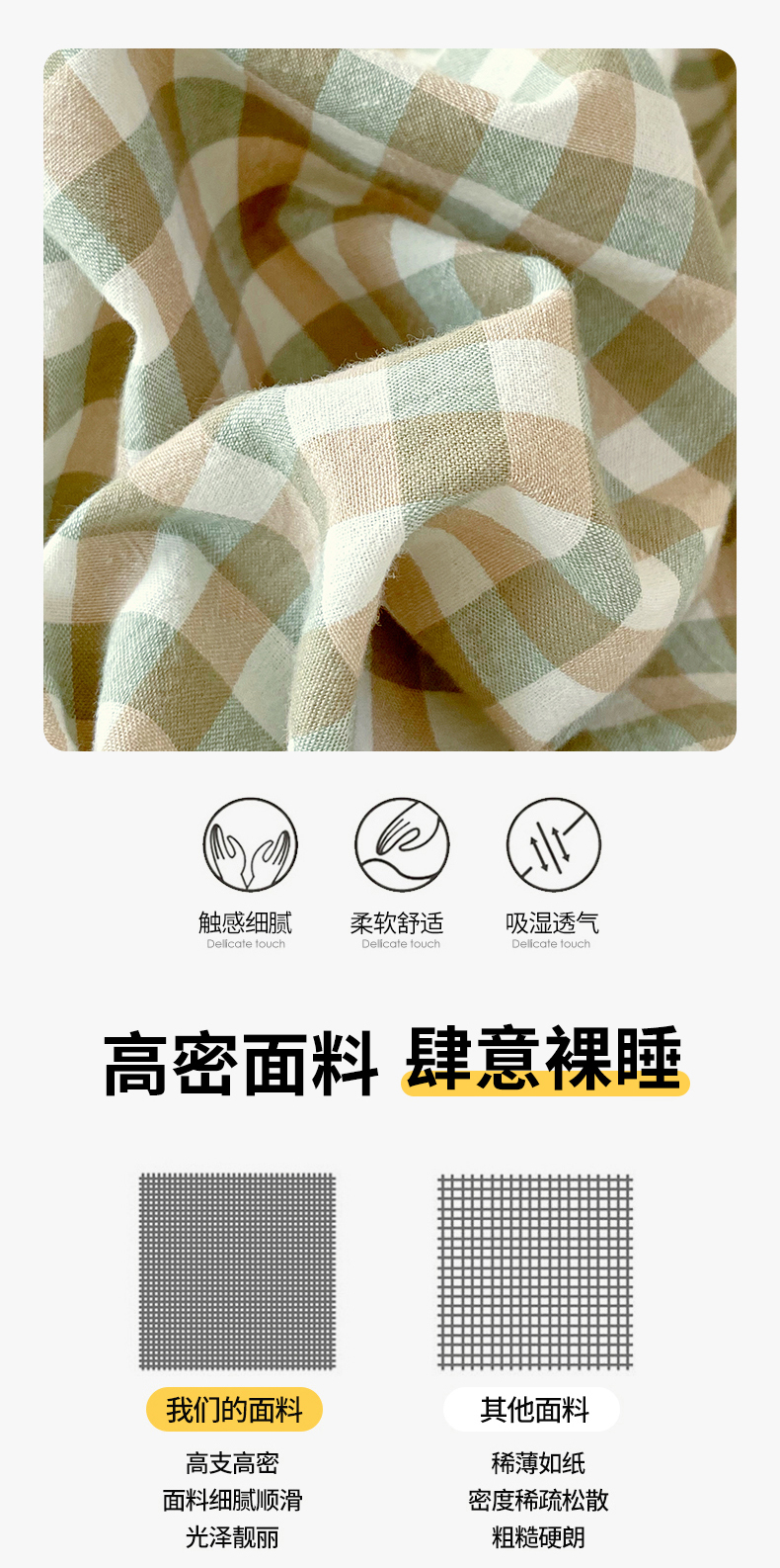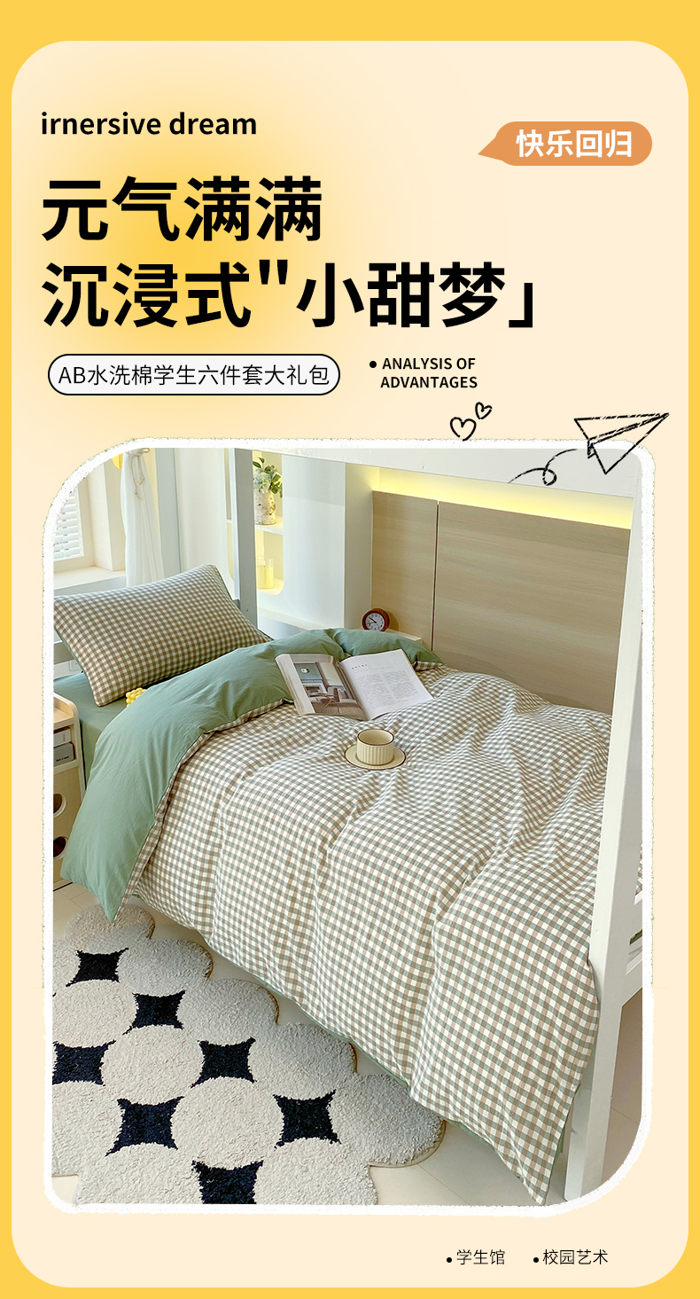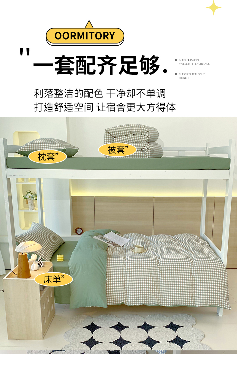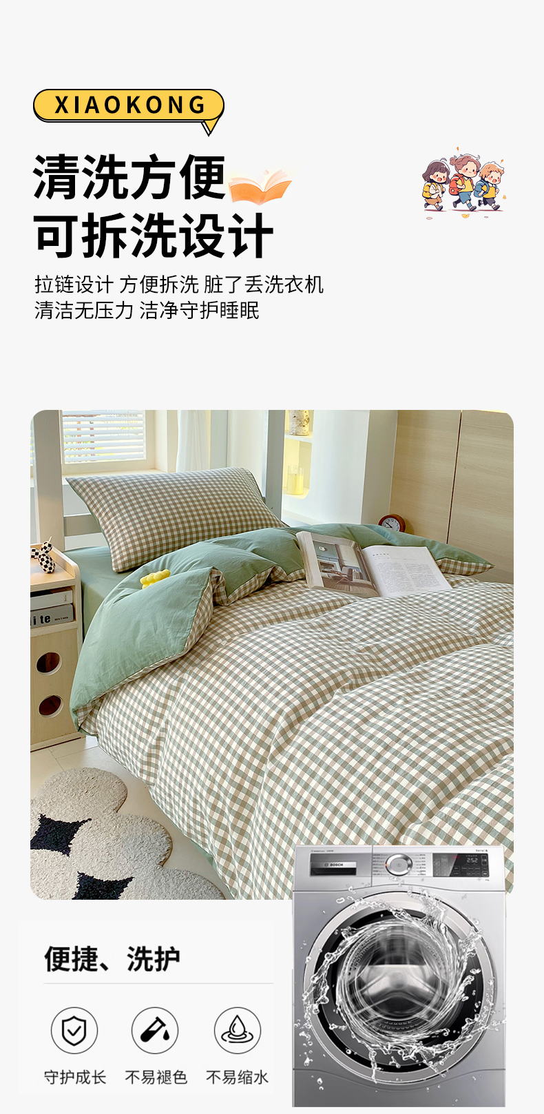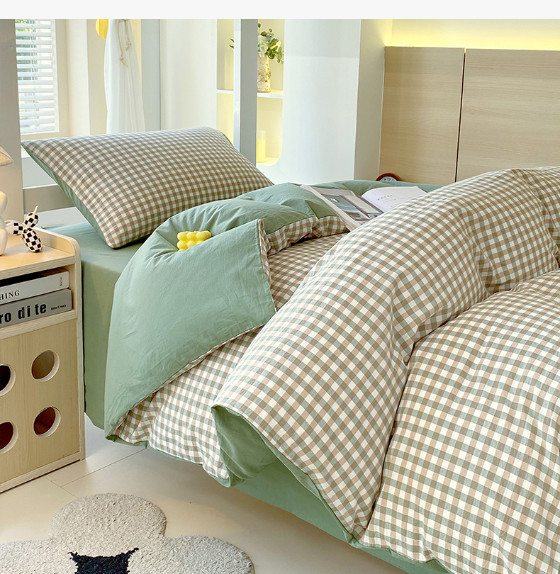 当前位置: 91家纺网 > 商品网购 > 床品套件 > 四件套 > 全棉普通四件套 > 春皖家纺 2025春夏新款AB版全棉纯棉色织水洗棉学生三件套六件套 素雅-绿格