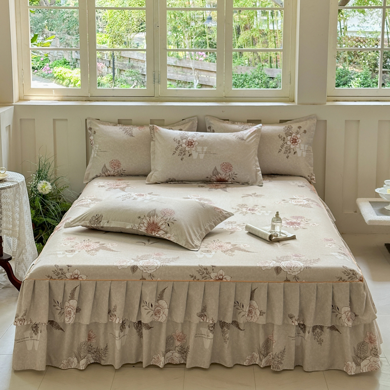 雨田家纺 2025新款柔软亲肤印花系列床裙单件单床裙 桑秋