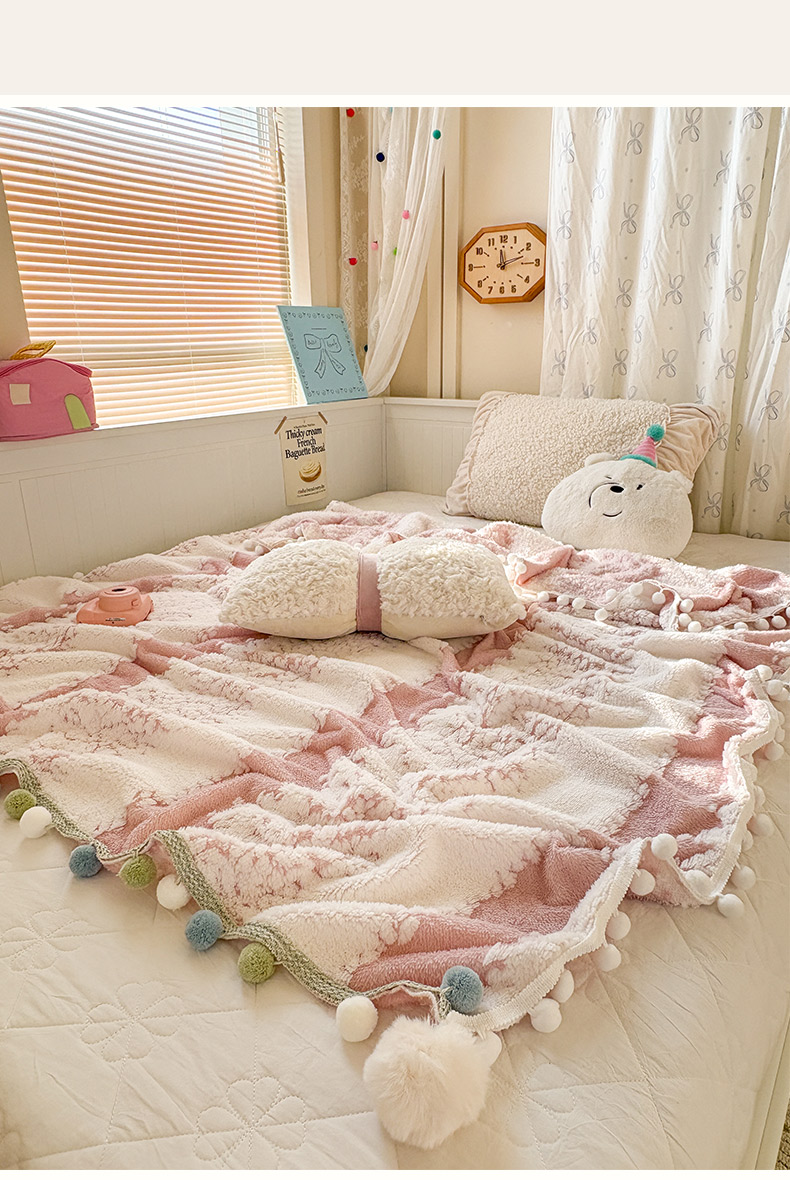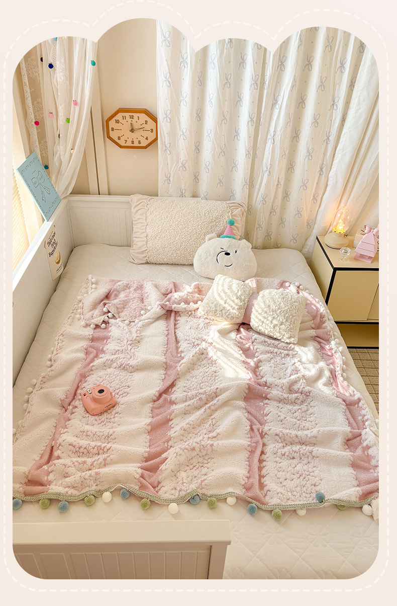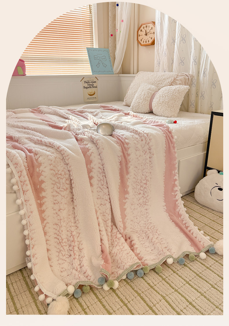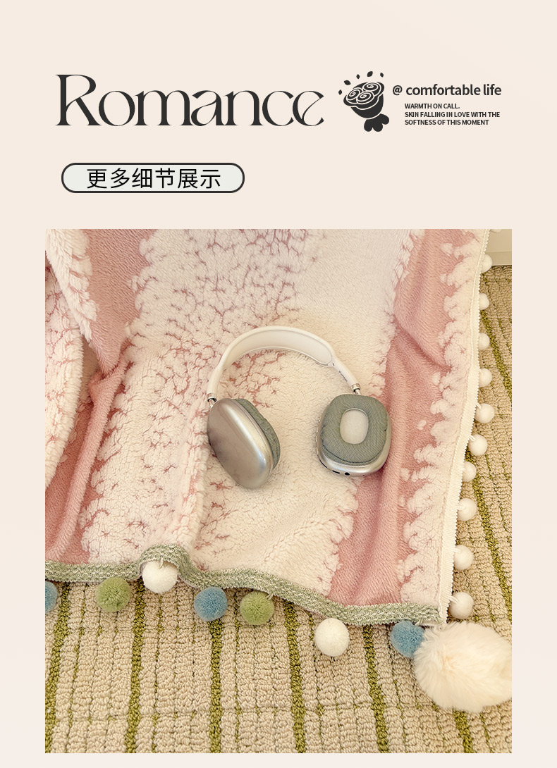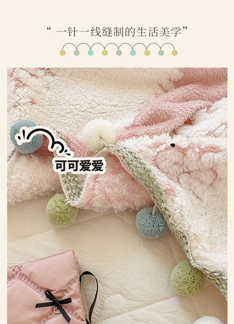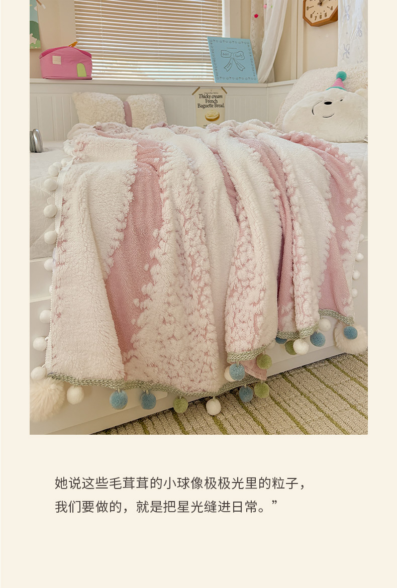 商品名称:潮邦创意家居 2025新款250G双色阳离子提花手工小球毯毛毯毯子暖球絮语 暖球絮语-清新粉