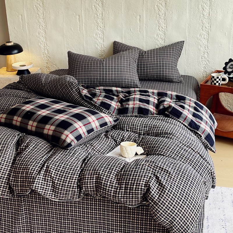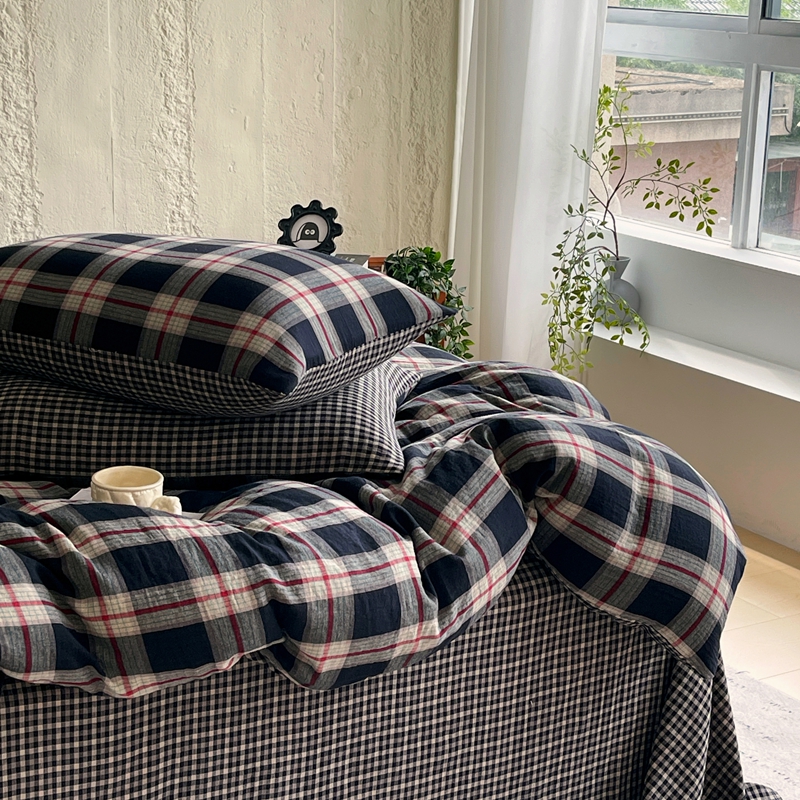 当前位置: 91家纺网 > 商品网购 > 床品套件 > 四件套 > 其它四件套 > (总)佰亿莱 2025新款棉麻双层纱四件套-黑大格