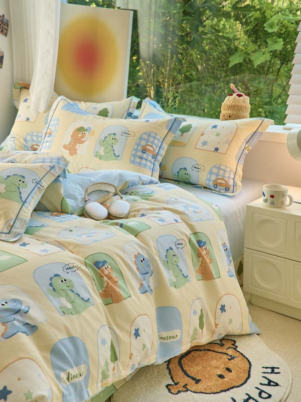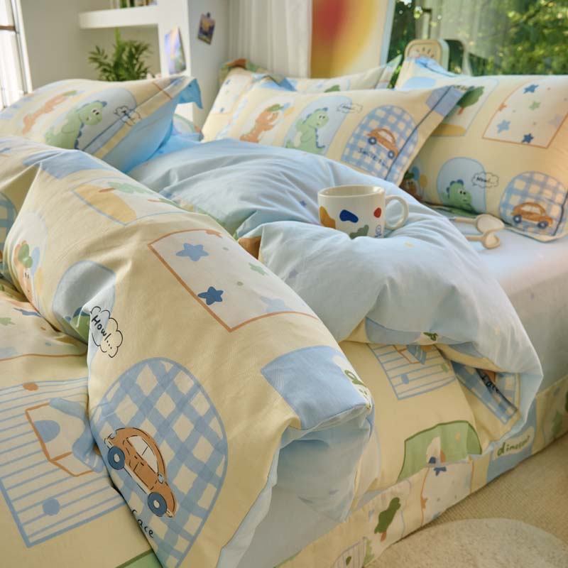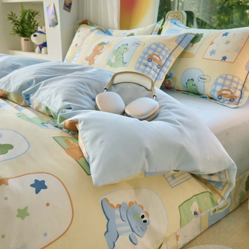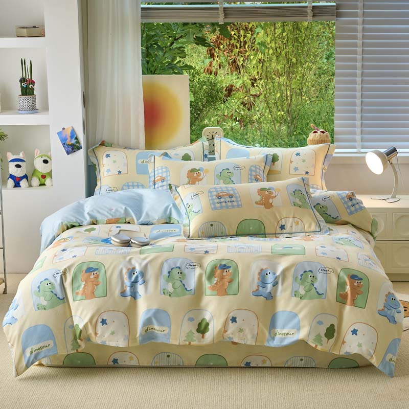 铭博家纺 新款直播爆款网红全棉四件套13070印花吊边一字绣纯棉被套工艺款 童龙记