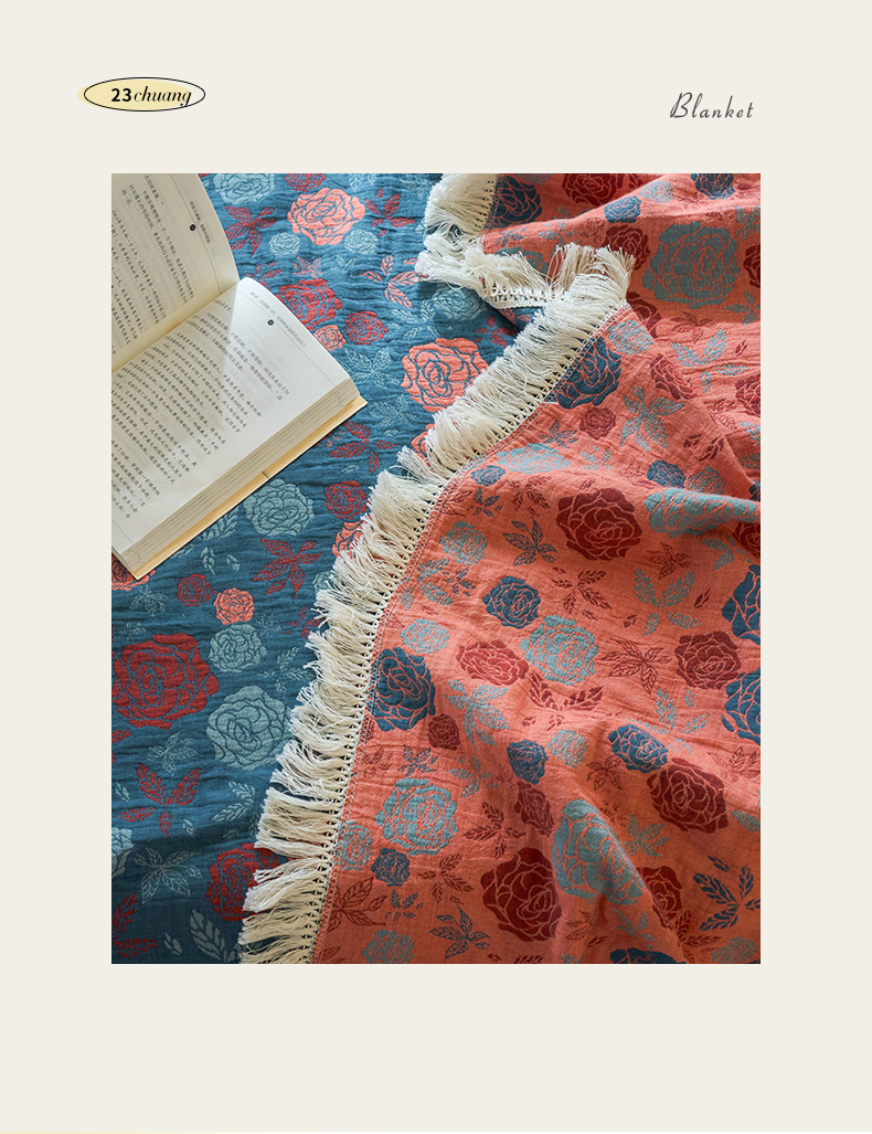 春皖家纺 2025新款棉麻大提花三层纱多功能盖毯毯子 棠颜