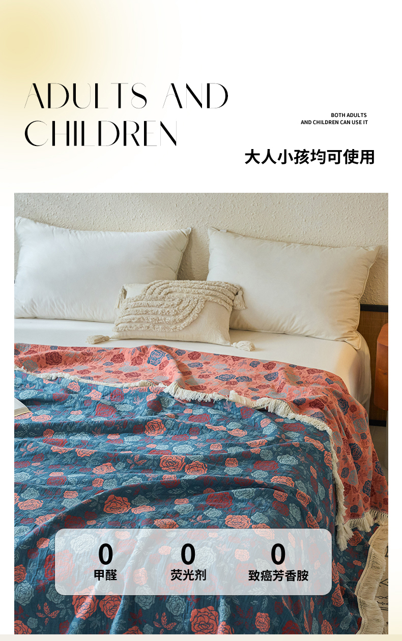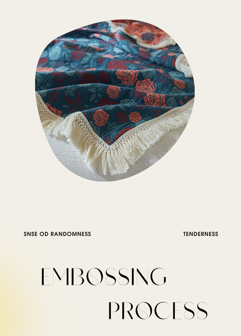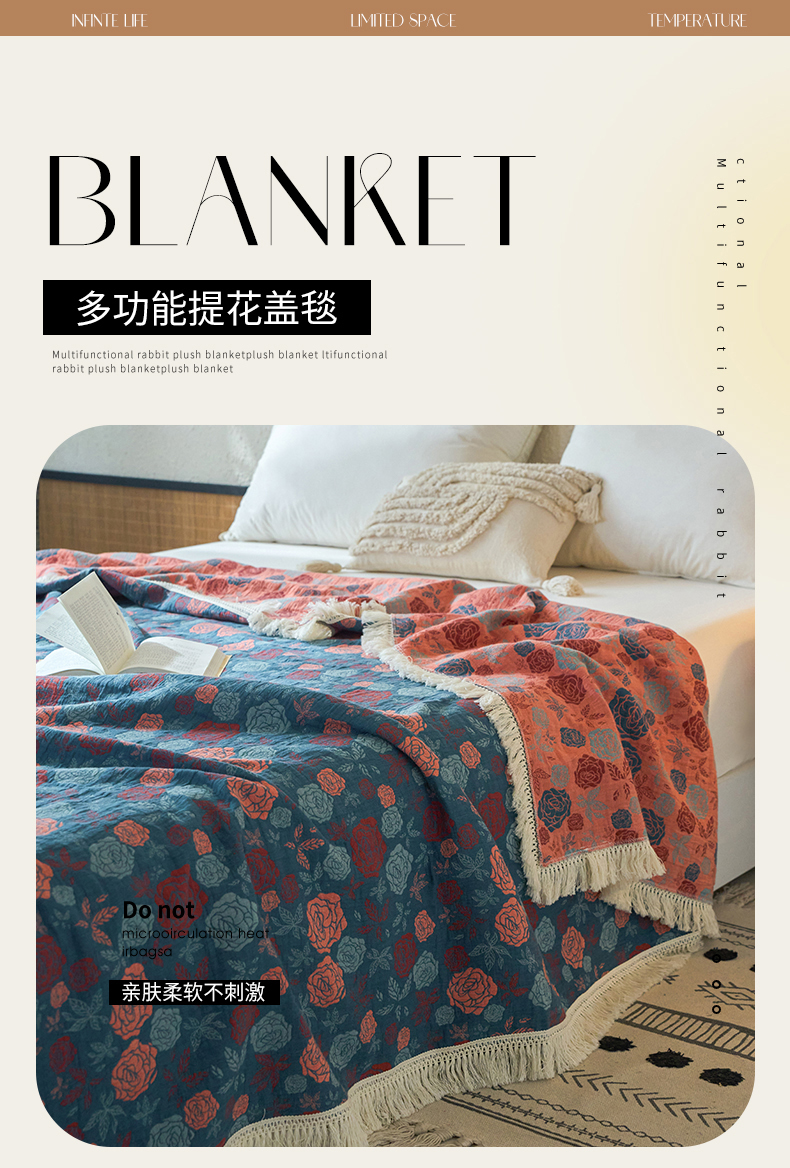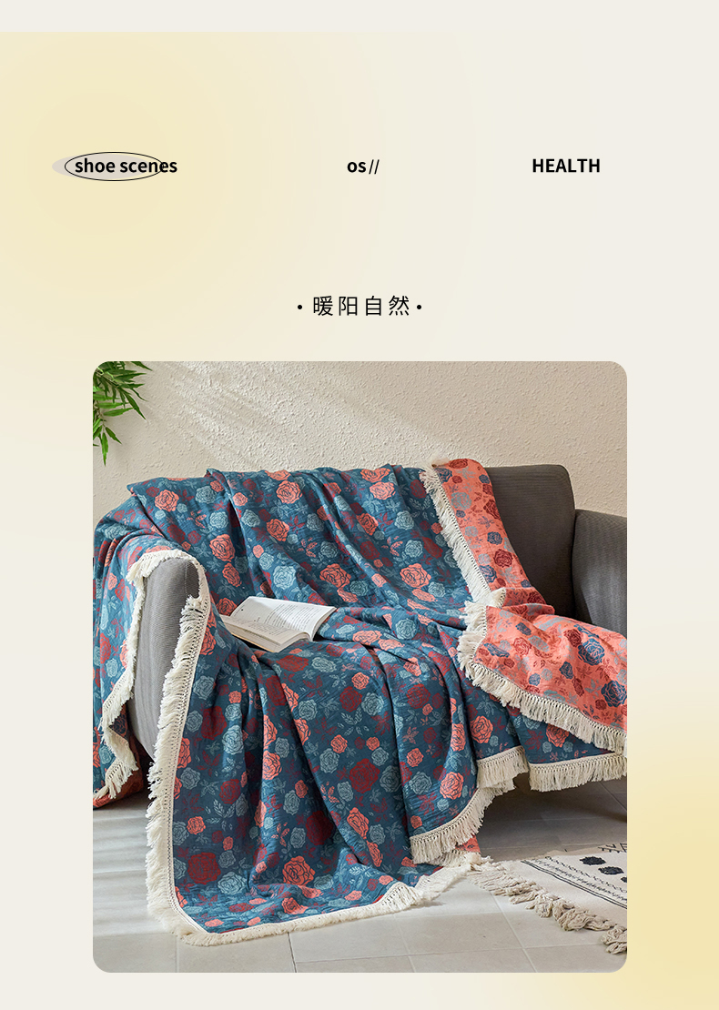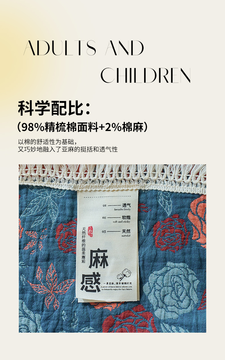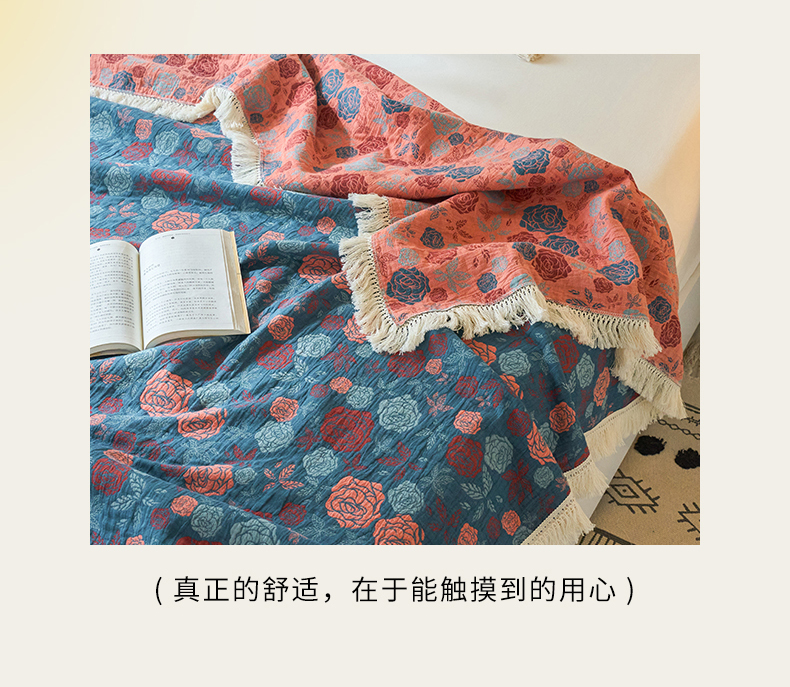 商品名称:春皖家纺 2025新款棉麻大提花三层纱多功能盖毯毯子 棠颜