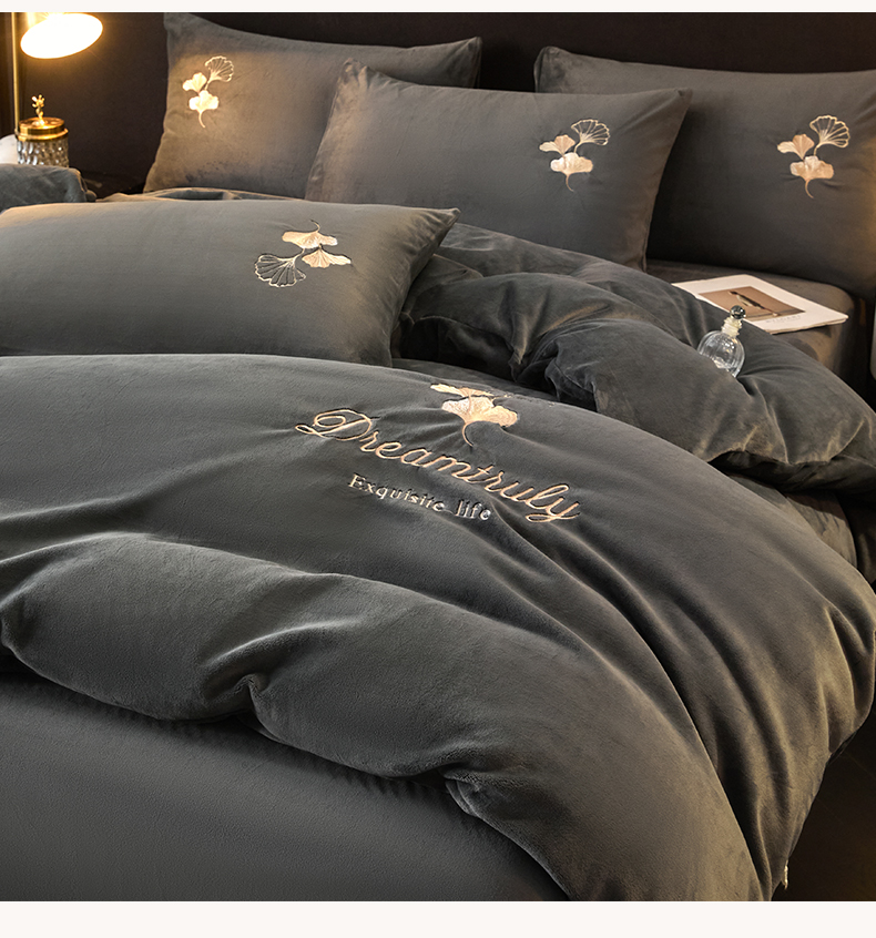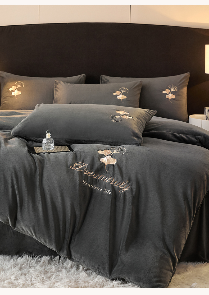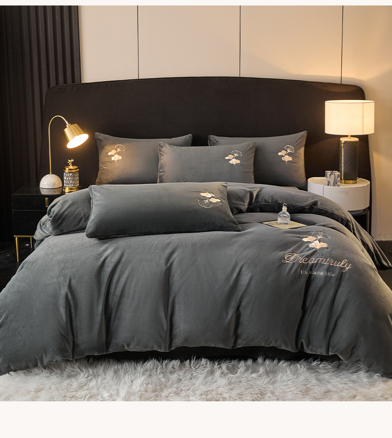 当前位置: 91家纺网 > 商品网购 > 床品套件 > 四件套 > 水晶绒四件套 > 如一 2025新款水晶绒纯色刺绣四件套-银杏系列 银杏-高级灰