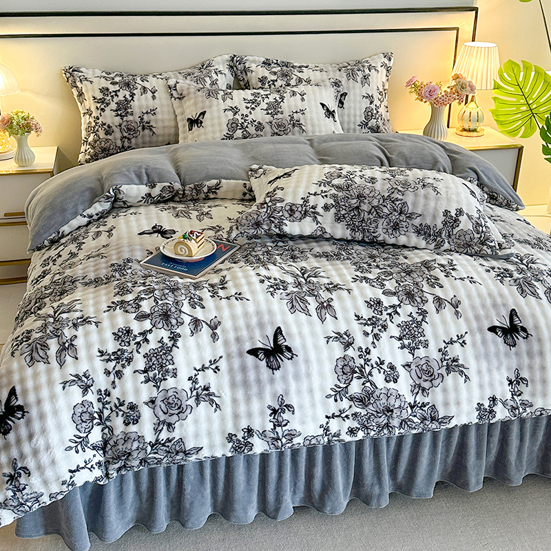 商品名称:富缦庭 2025新款泡泡牛奶绒床盖款四件套 花蝶情缘