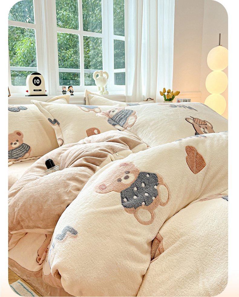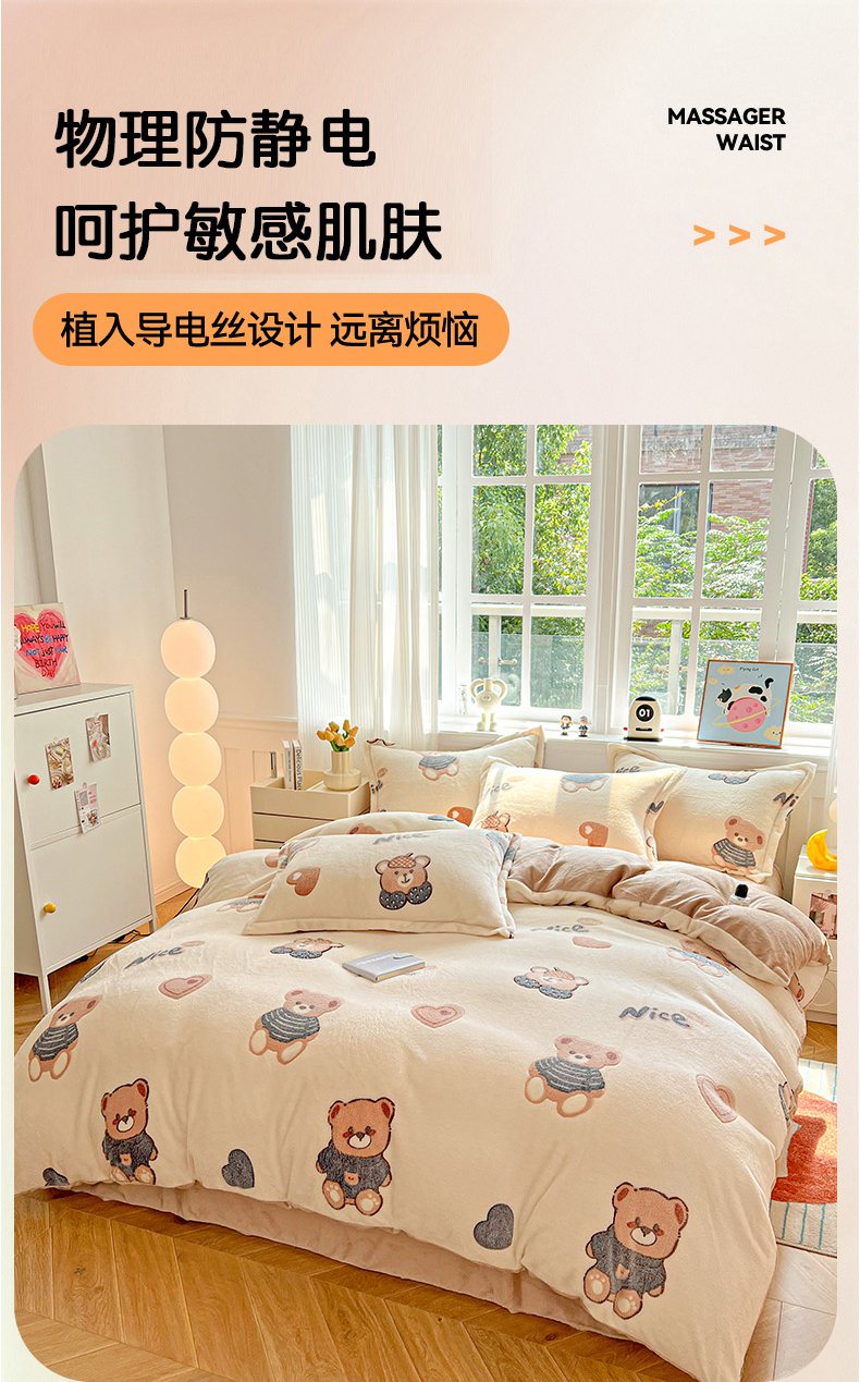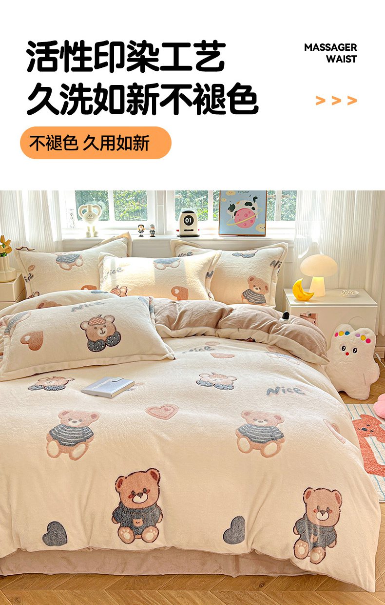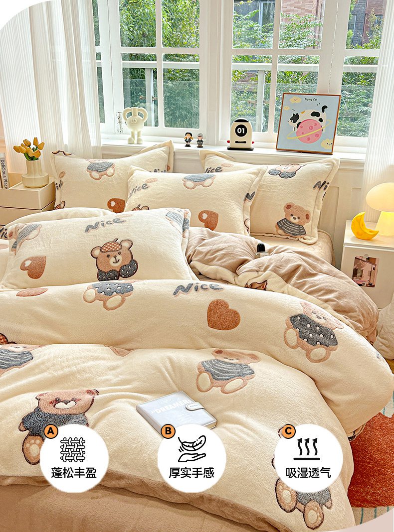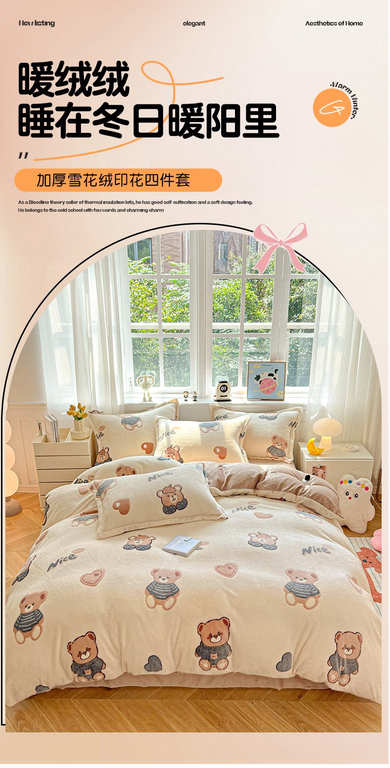当前位置: 91家纺网 > 商品网购 > 床品套件 > 四件套 > 牛奶绒四件套 > 韩巢家纺 2025新款高克重雪花绒牛奶绒四件套 英伦熊
