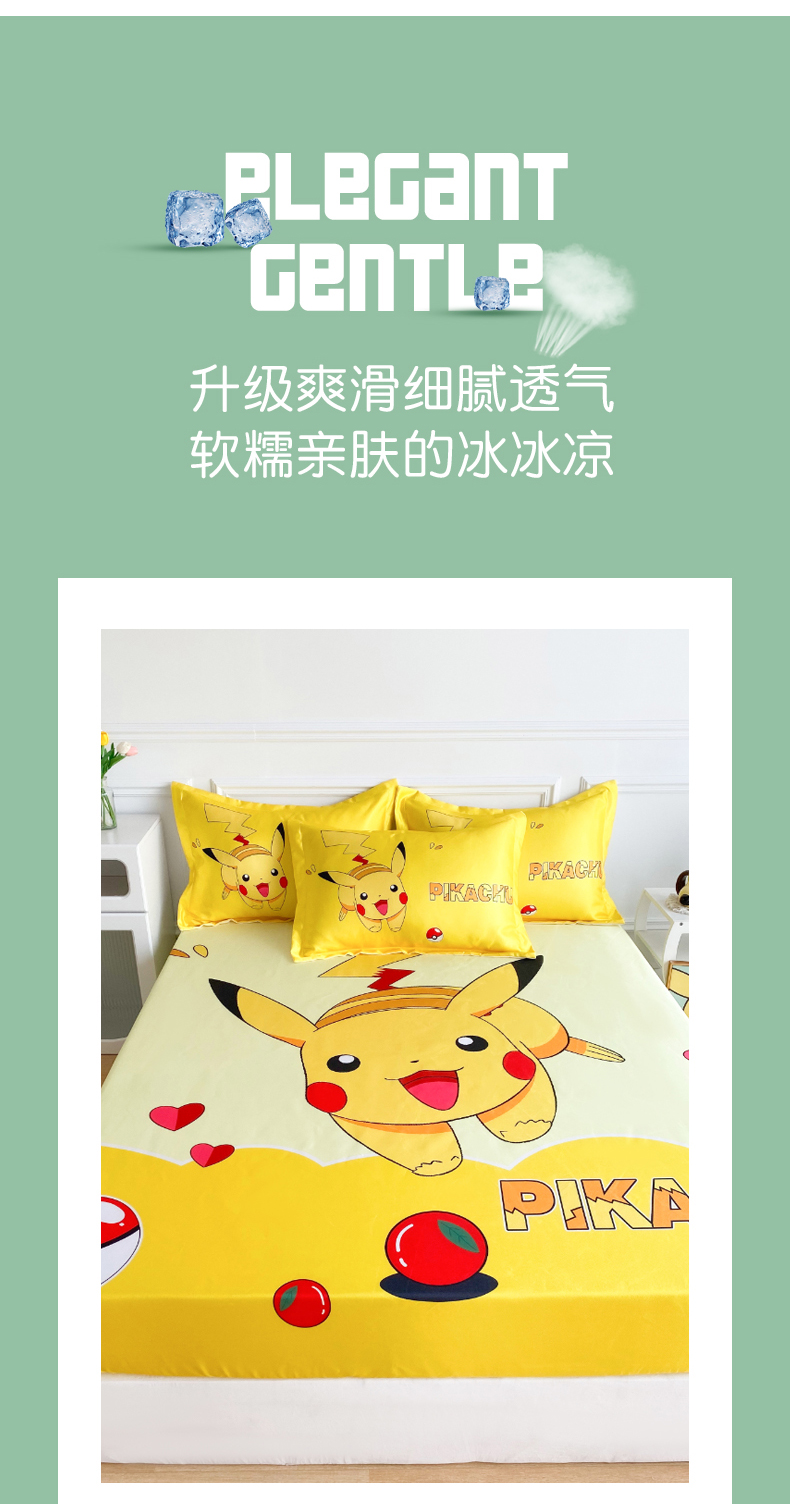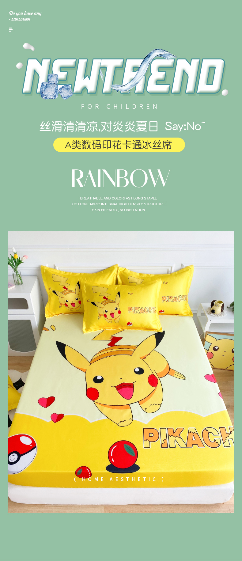 一电 2025新款跨境电商外贸夏季卡通冰丝凉席床笠可水洗学生宿舍单人空调席子 奔跑皮卡丘
