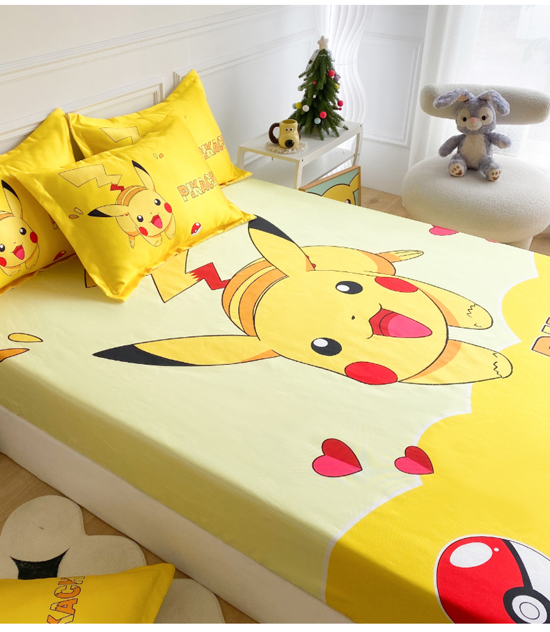 • 91家纺网 家纺一手货源 找家纺 一电 2025新款跨境电商外贸夏季卡通冰丝凉席床笠可水洗学生宿舍单人空调席子 奔跑皮卡丘