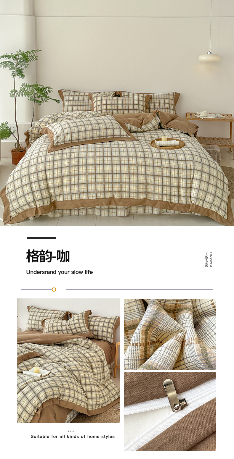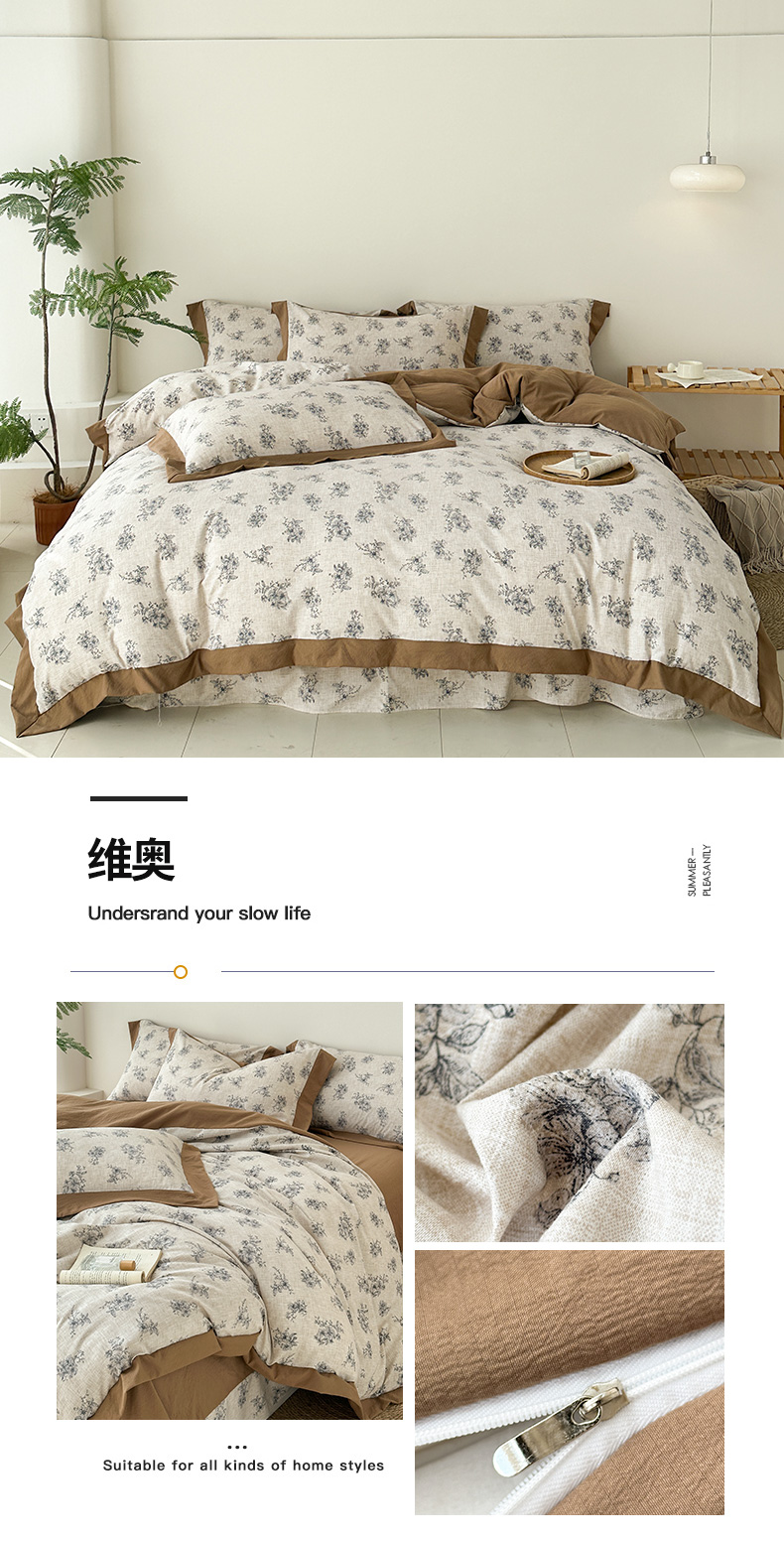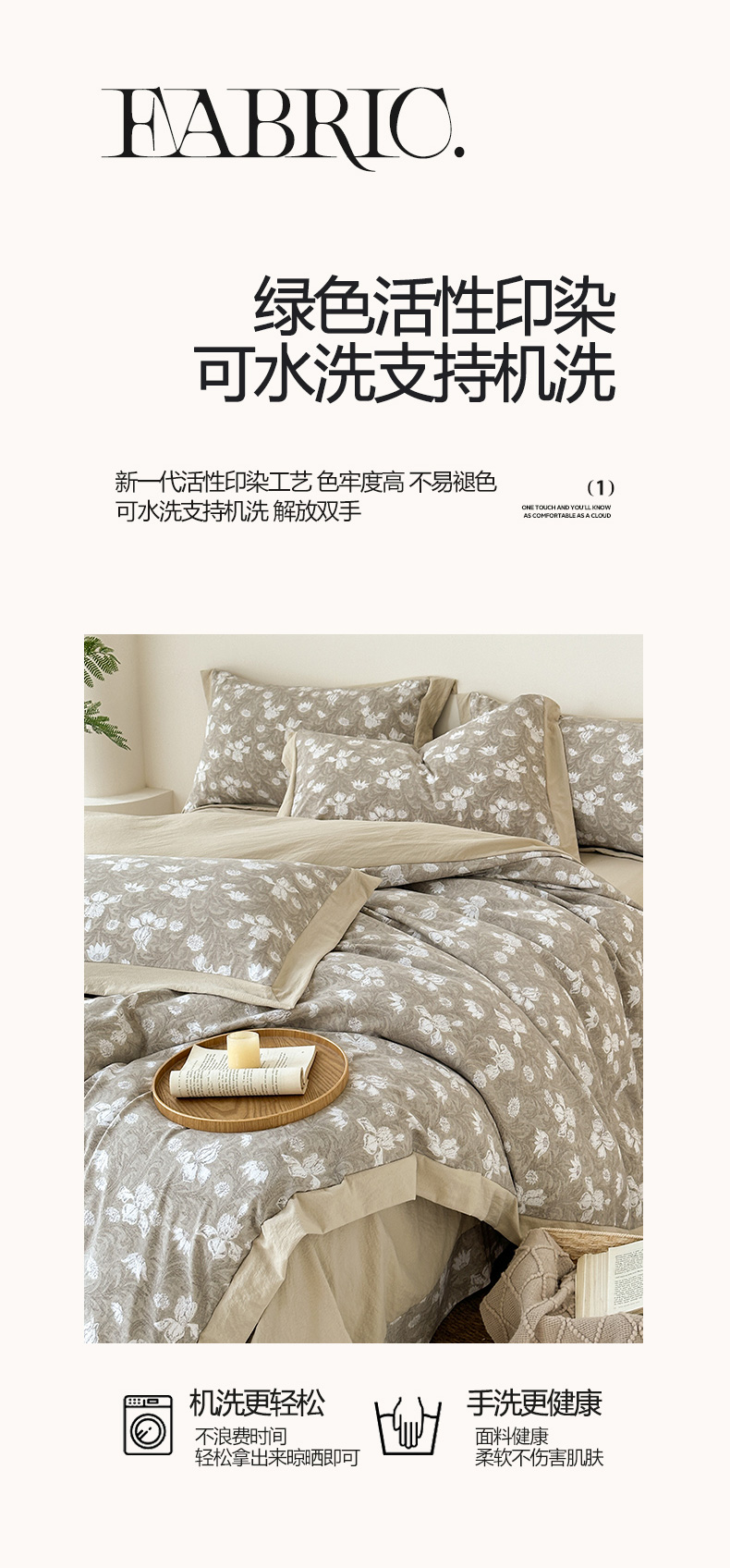 (总)雨田家纺 2025新款A类汉麻双层纱四件套,初春,繁景如画,格韵-咖,快乐时光,青春年华,轻语,维奥,紫郁