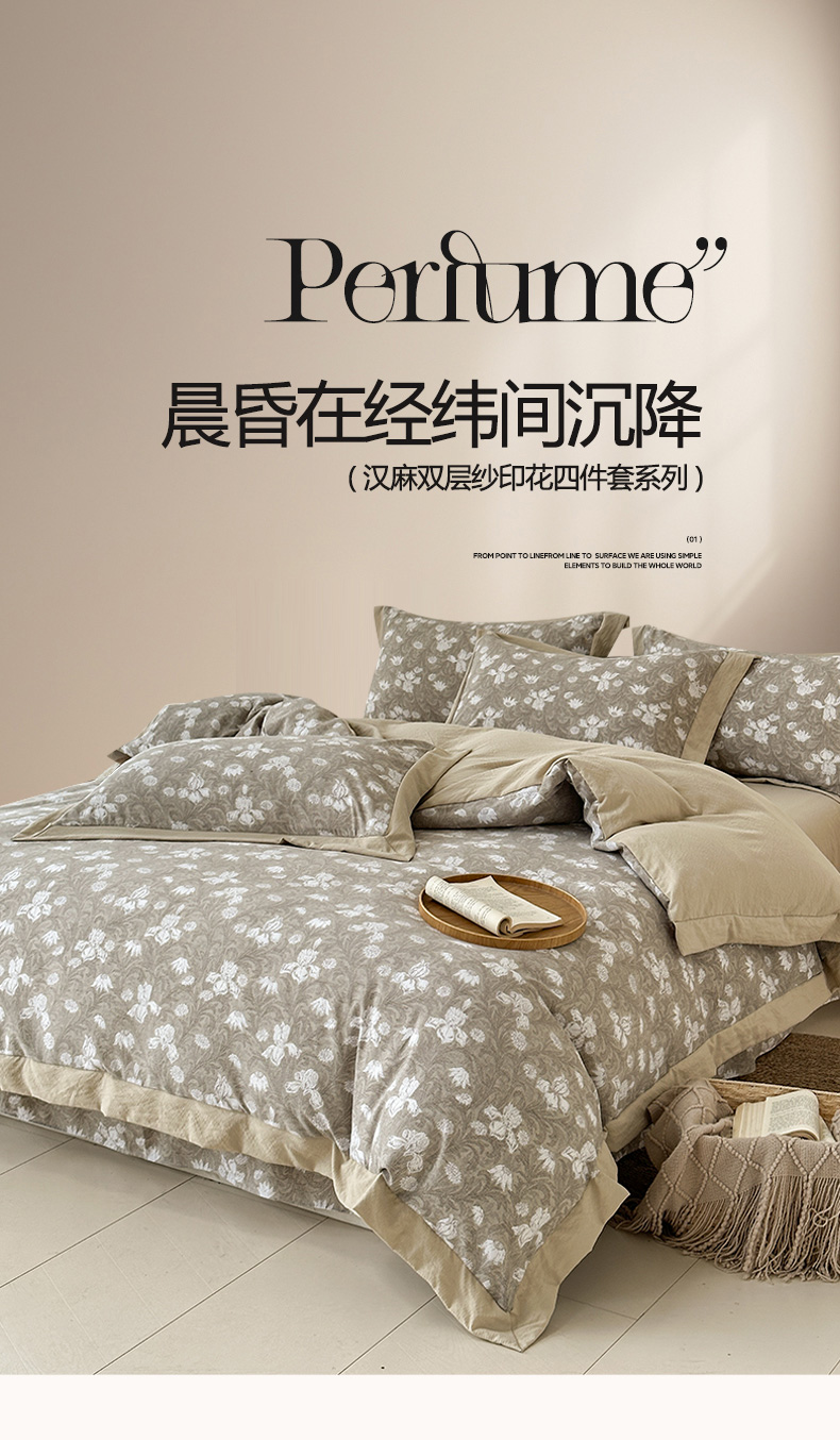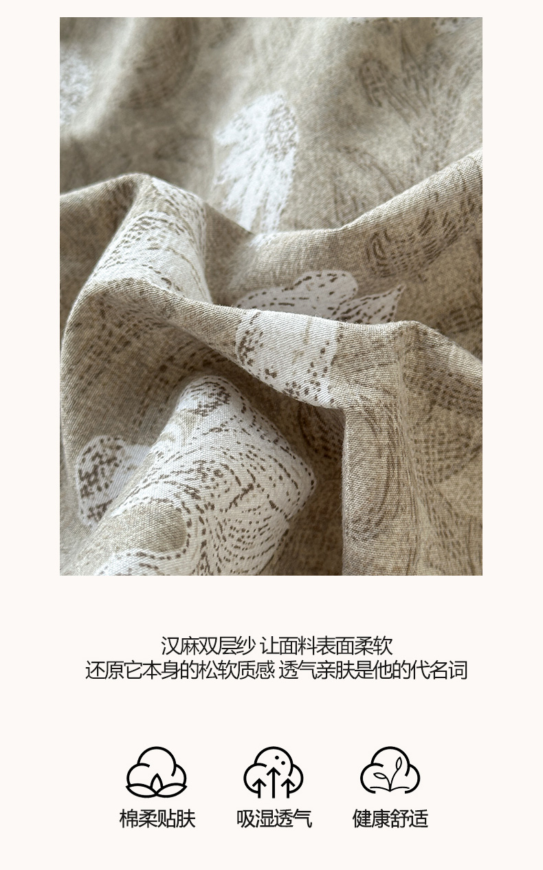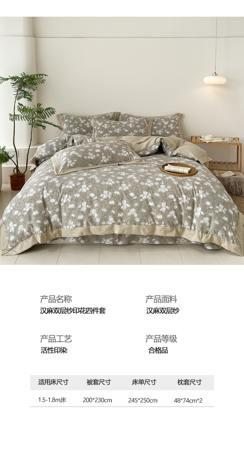商品名称:雨田家纺 2025新款A类汉麻双层纱四件套 轻语