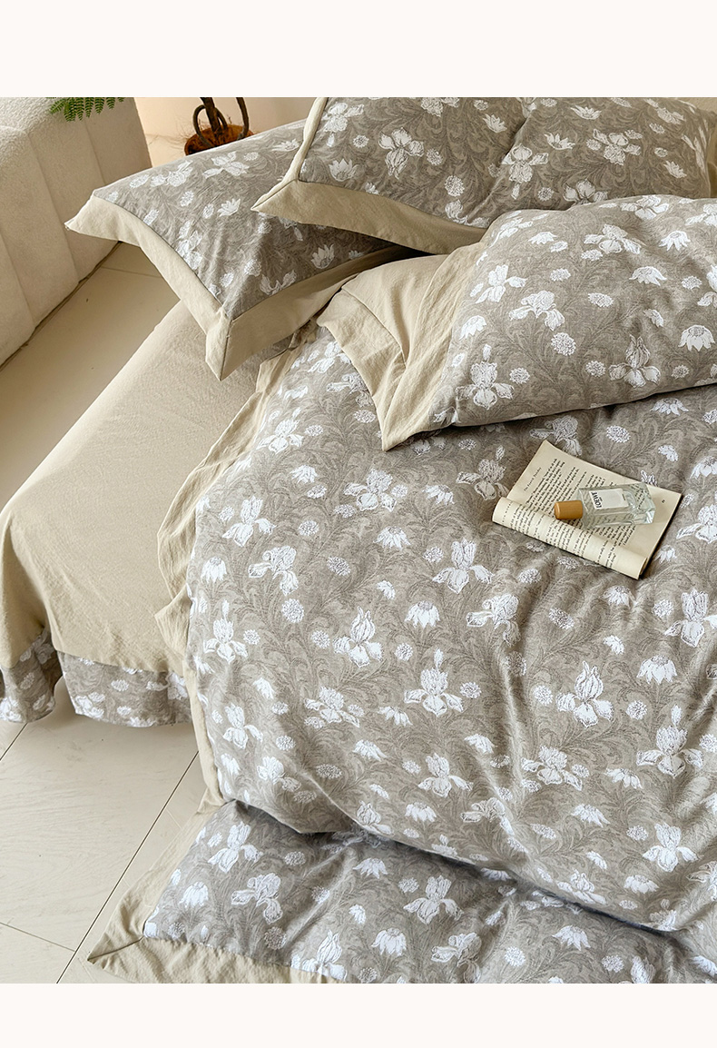 (总)雨田家纺 2025新款外贸跨境直播亲肤印花床裙三件套,百合花,柔情似水,鲜花盛开,向阳而生,罗卡娜,生如花夏灰
