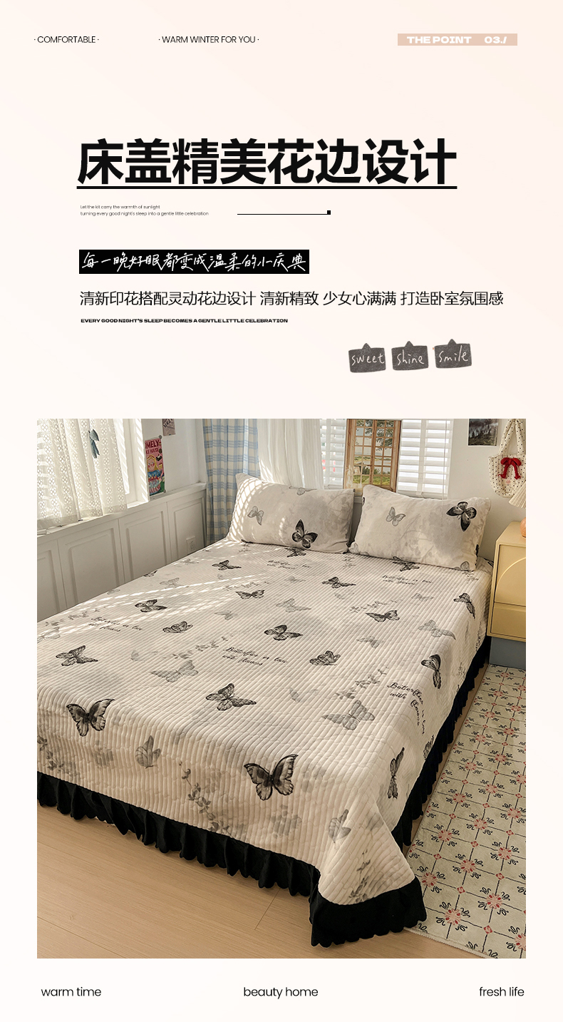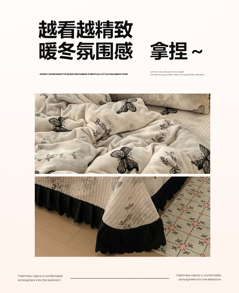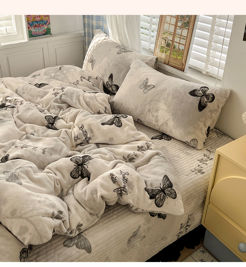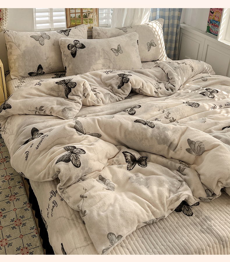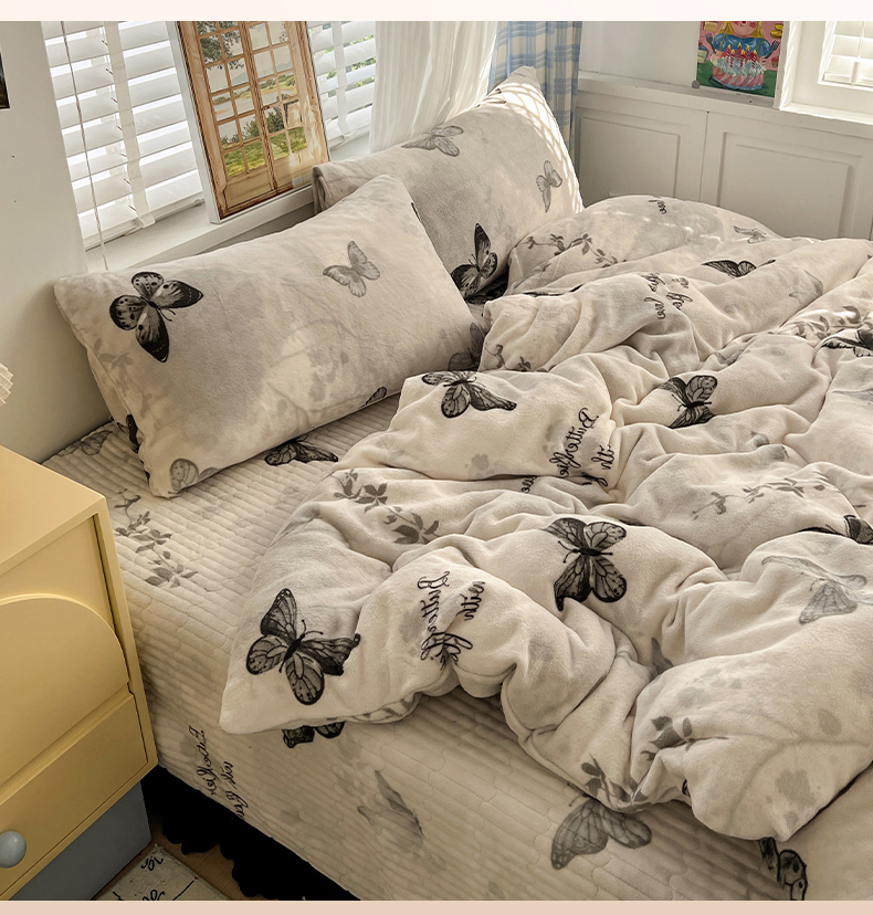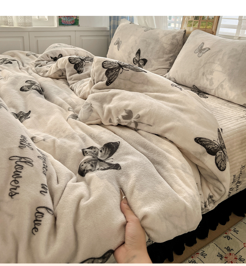 当前位置: 91家纺网 > 商品网购 > 床品套件 > 四件套 > 其它四件套 > 逸林家纺《原希尔顿逸林》 2025新款牛奶绒床盖四件套加厚印花法式赫本风花边床盖四件套 床盖款-蝴蝶意境