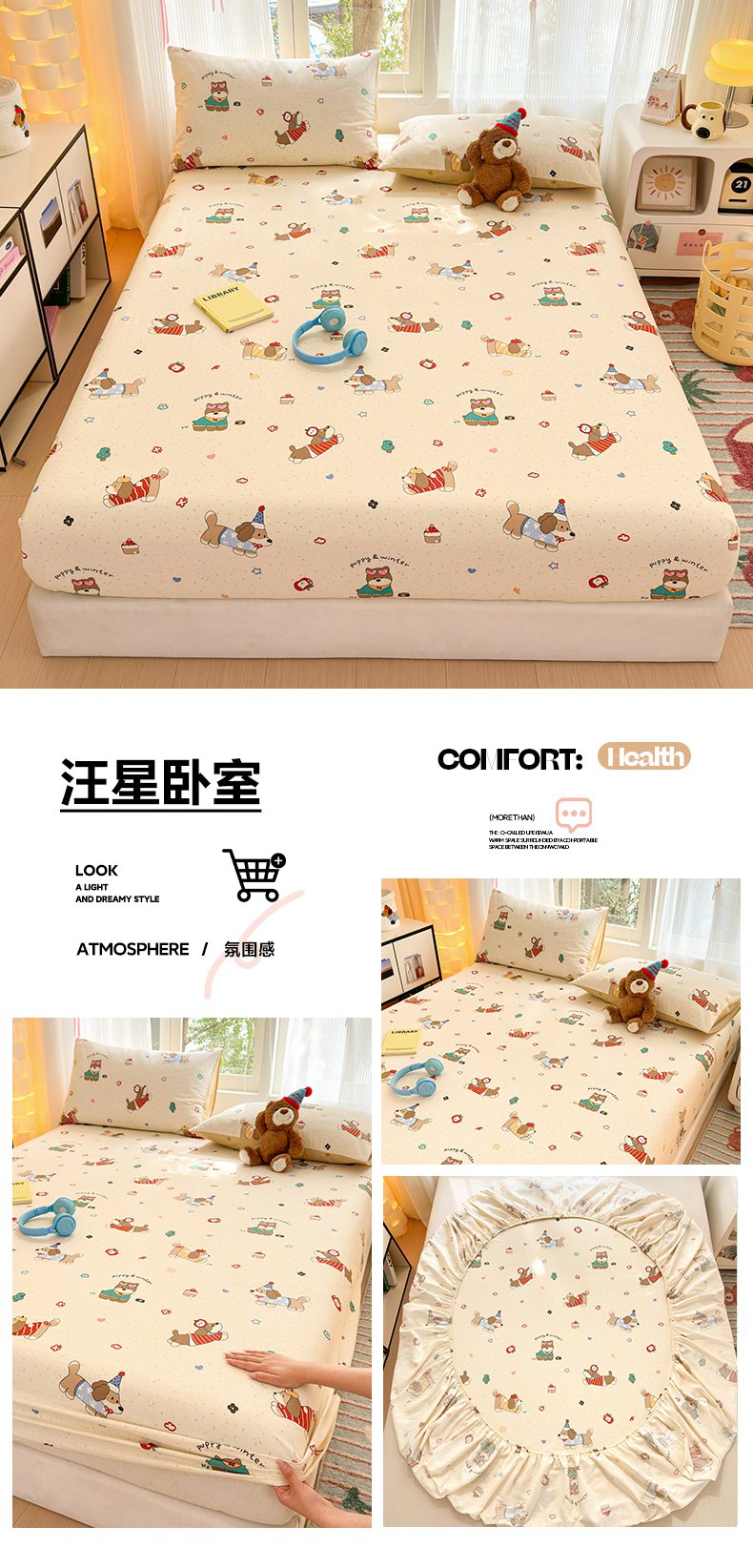 • 91家纺网 家纺一手货源 找家纺 (总)清雅福 2026春夏新款INS小清新40支全棉13372四件套第一批,棒棒糖女孩,春之约定,点点小狗,动物聚会,豆丁小熊,粉心狗,富贵狗,果子象,含羞草,假日小狗