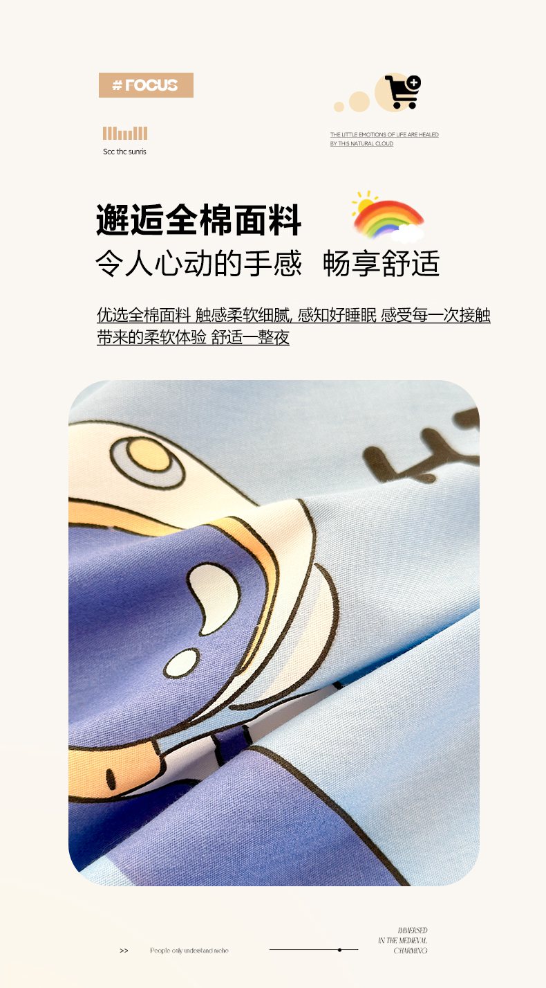 • 91家纺网 家纺一手货源 找家纺 (总)清雅福 2026春夏新款INS小清新40支全棉13372单被套第二批,可爱萌星,可爱喵喵,蓝色小象,觅秋,沫汐,跷跷马,甜蜜花园,星星布偶,星星企鹅,幸福小熊,幸运星,月亮狗