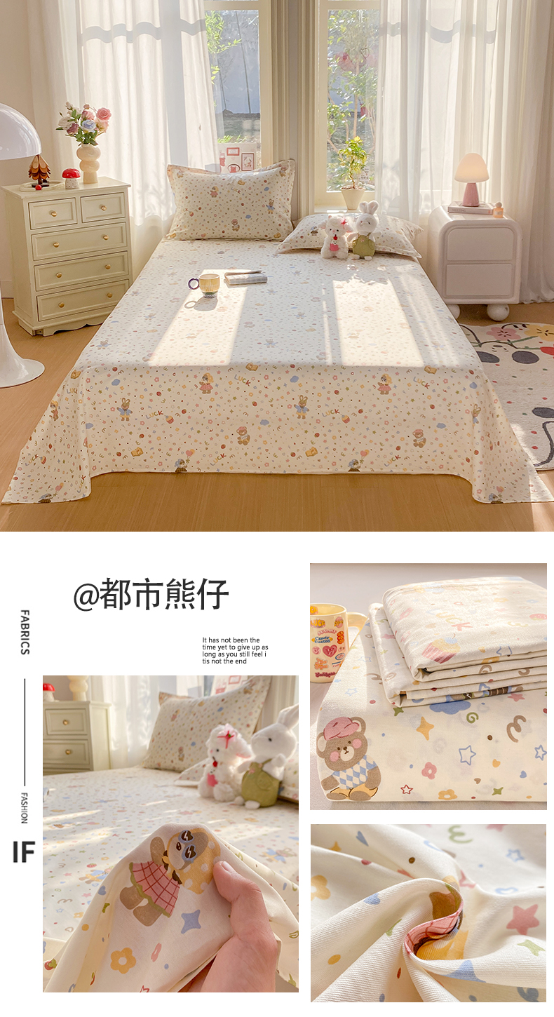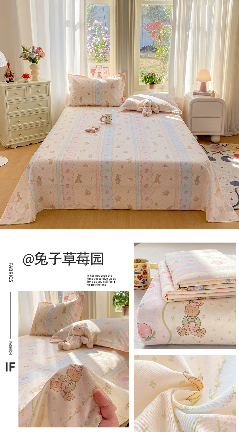• 91家纺网 家纺一手货源 找家纺 花梦欣 2026新款全棉印花单品系列3简约卡通款-单床单 童话花町