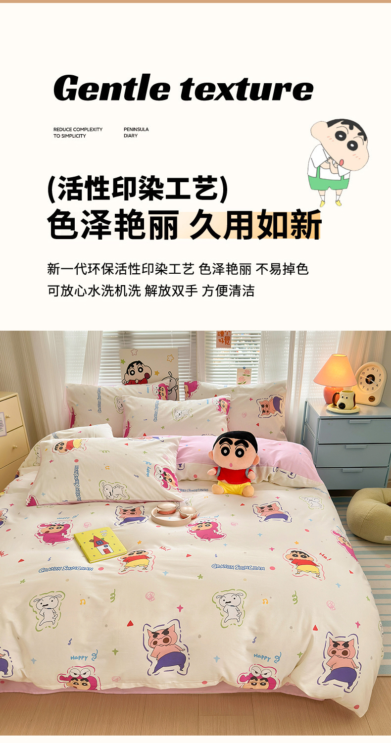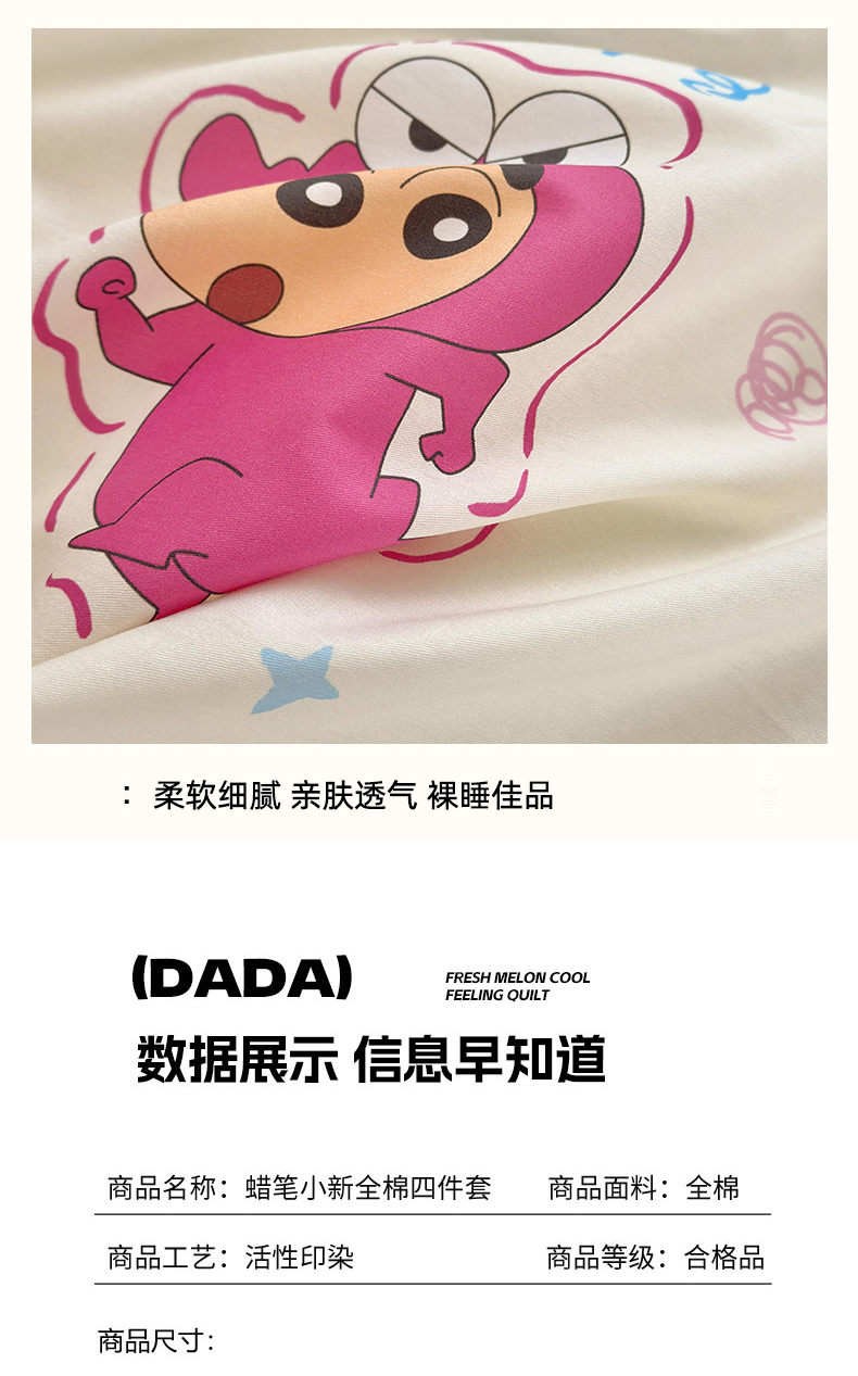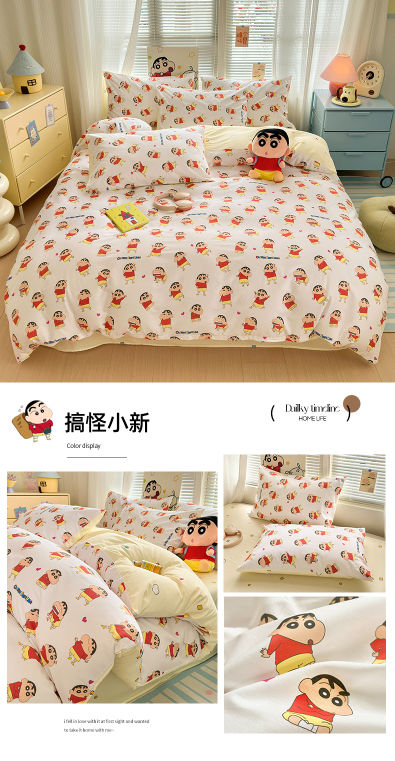 商品名称:曼之夏 2026新款全棉卡通印花四件套系列-蜡笔小新 可爱小新