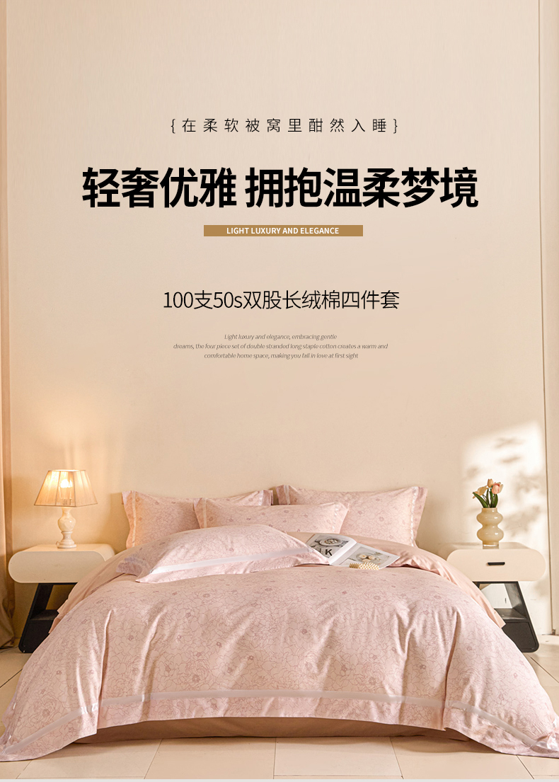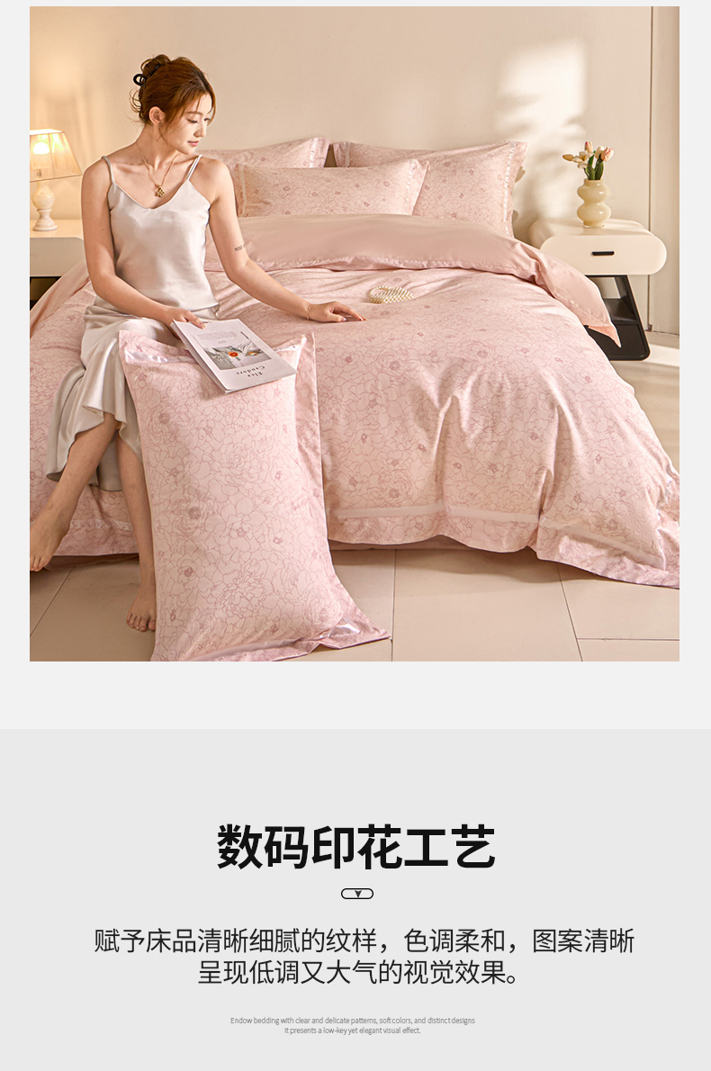 (总)新方向 【控价 提供买家秀】2026新款数码印花50s双股全棉贡缎长绒棉四件套-迷境(控价 标准328元 加大348元),迷境-蔷薇粉,迷境-爵士灰