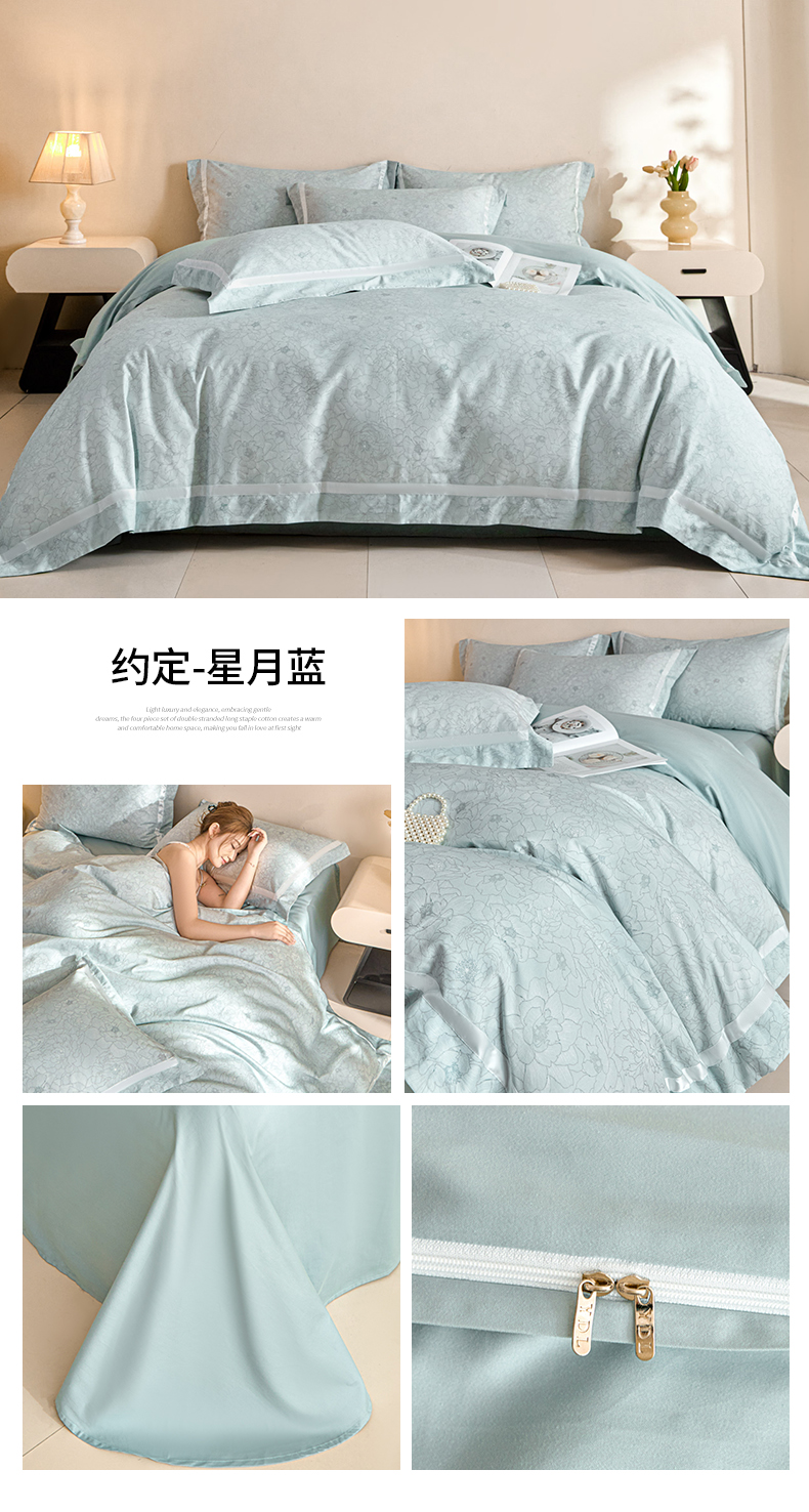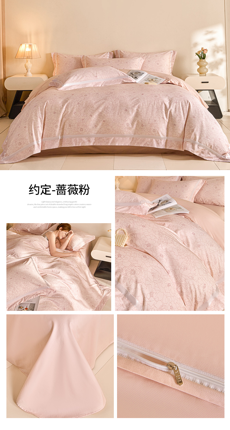 (总)新方向 【控价 提供买家秀】2026新款数码印花50s双股全棉贡缎长绒棉四件套-怦然心动,怦然心动-蔷薇粉,怦然心动-香槟,怦然心动-星月蓝