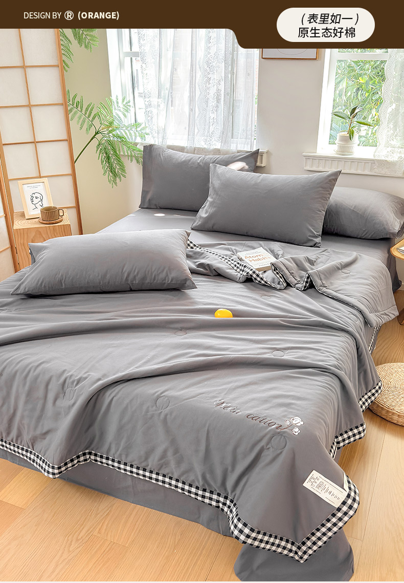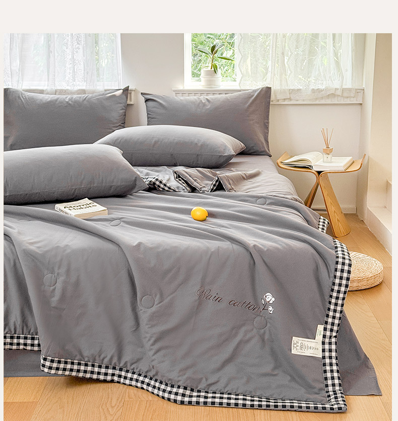 雯雨家纺 2026新款全棉水洗棉棉花夏凉被-简森系列 简森-高级灰
