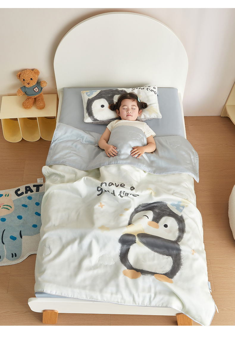 (总)荷马之梦 2026新款60s兰精天丝原创数码印花山茶花桑蚕丝儿童夏被,馋嘴小狮,番茄兔兔,糯糯小熊,西瓜熊猫,星星企鹅,组合图